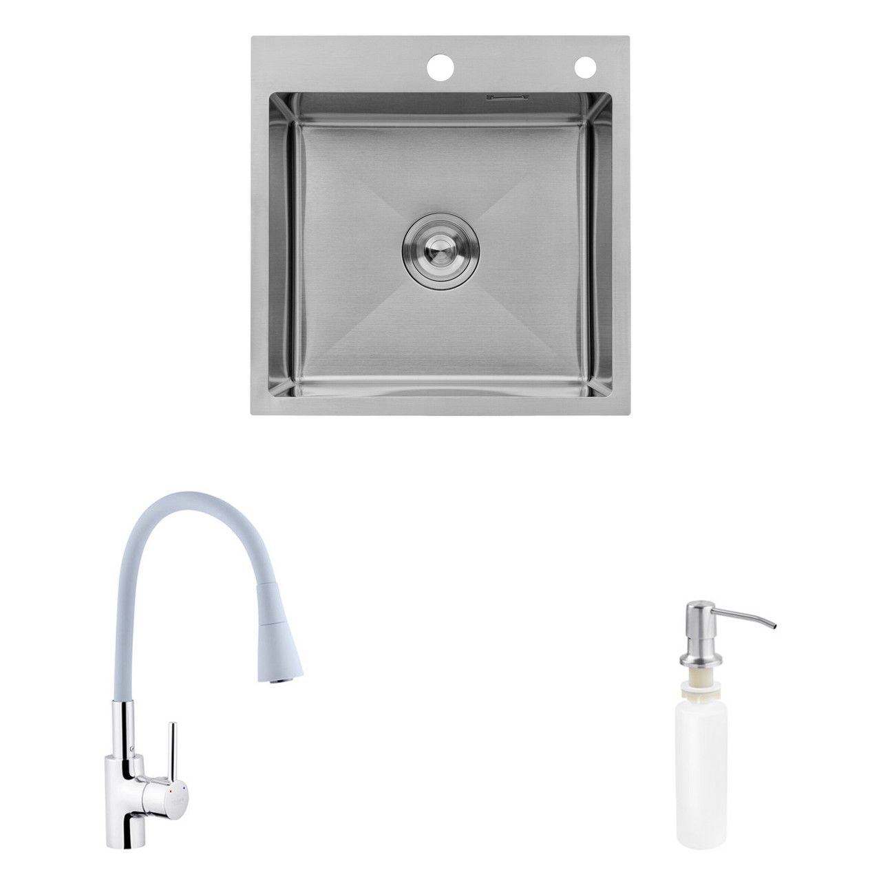 Комплект кухонна мийка Kroner Gebürstet-5050HM + змішувач Küche-C031WHI + дозатор Spender-016
