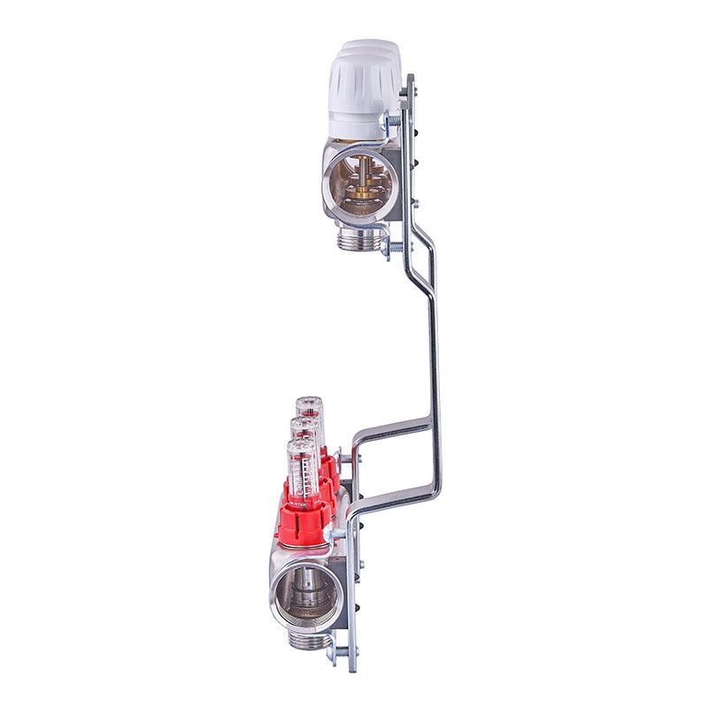 Колекторний блок верх/низ з витратомірами та термоклапанами призначений для розподілу теплоносія в системах водяного опалення та теплої підлоги. Вузол забезпечує точне балансування контурів і зручне регулювання подачі теплоносія для стабільної та ефективної роботи системи.