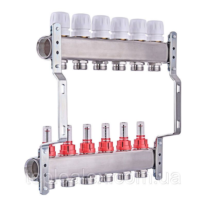 Балки на 6 контурів гребінка на 6 виходів з витратами та термоклапанами колекторний блок на 6