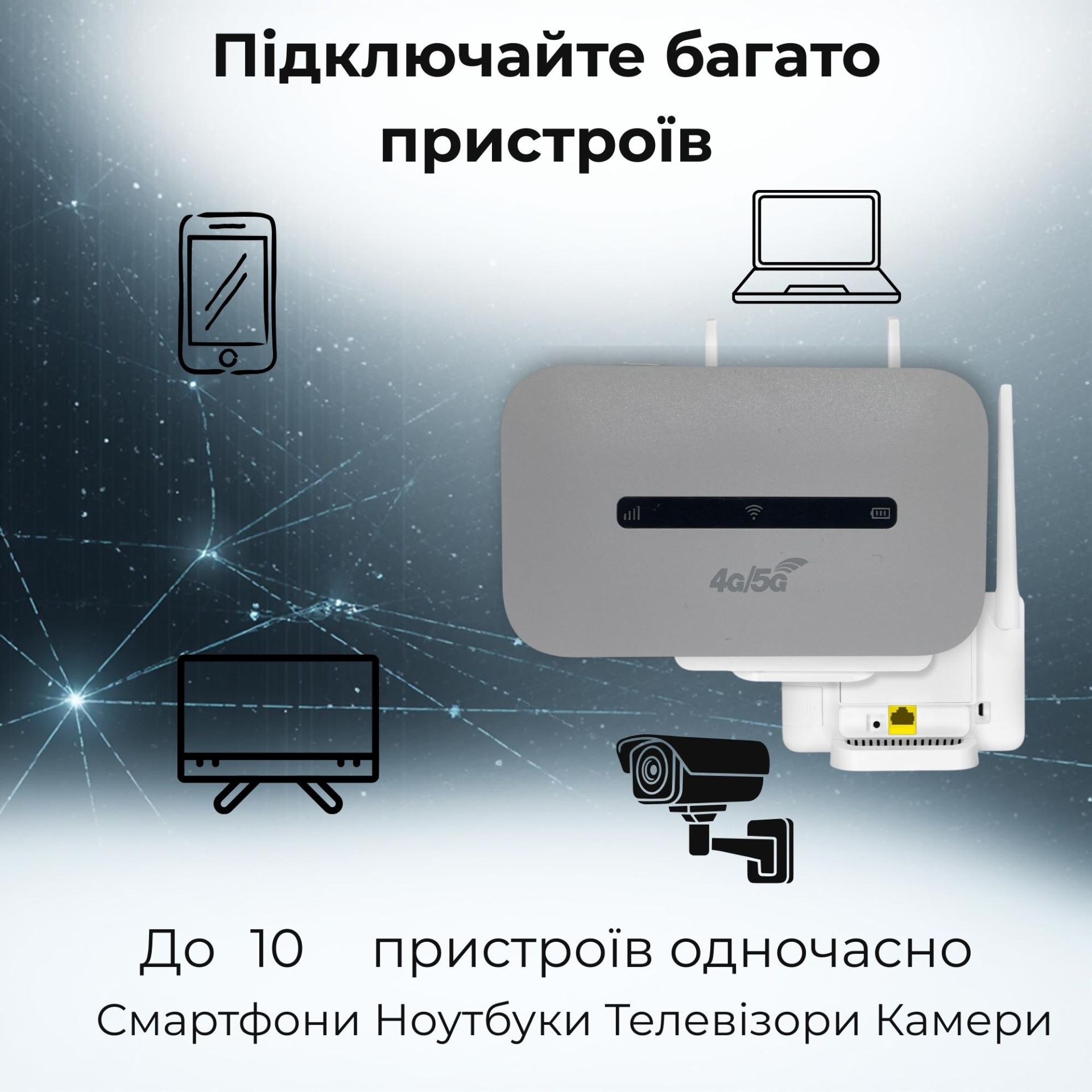 Роутер підтримує мережі 4G LTE Cat4 зі швидкістю передачі даних до 150 Мбіт/с та працює з українськими операторами: