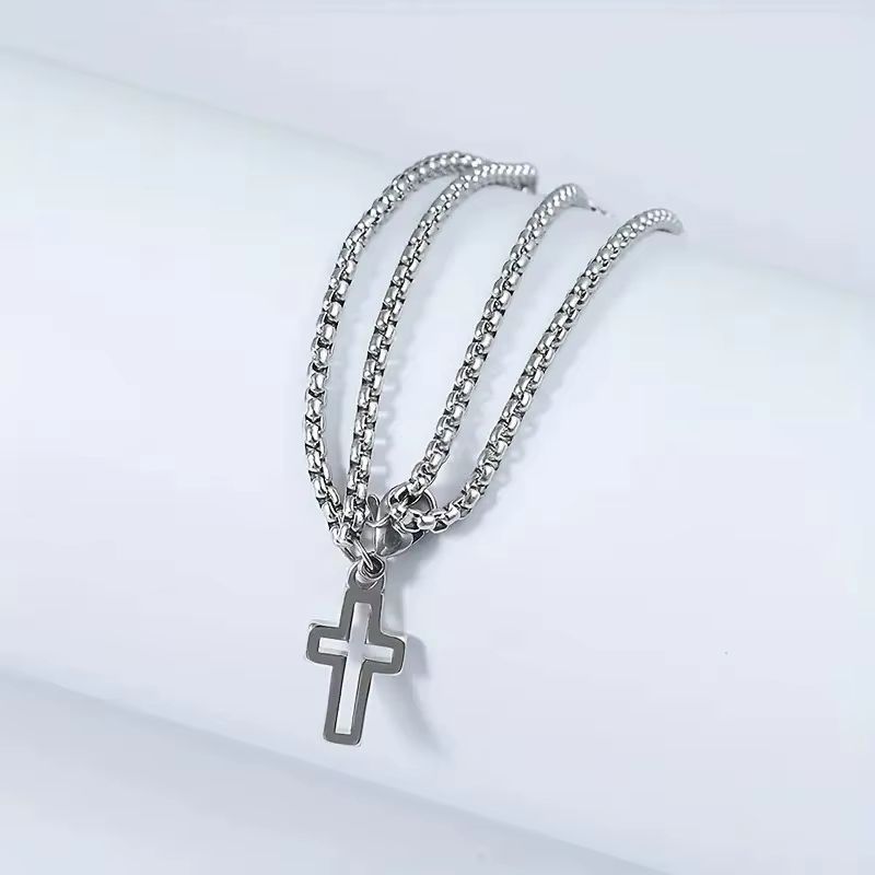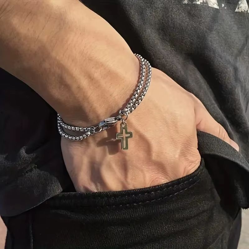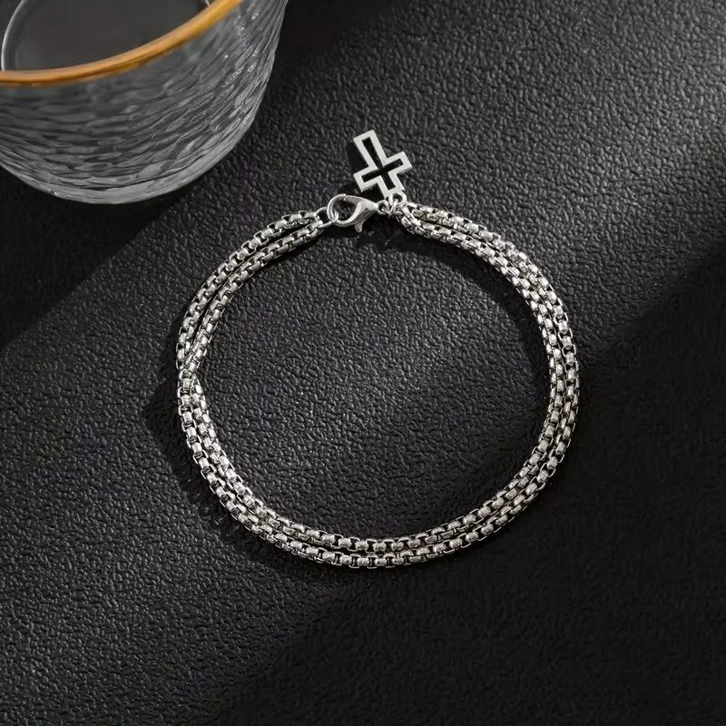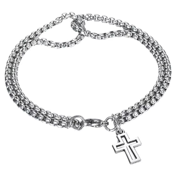 Браслет з хрестом подвійний ланцюг і хрест із сталі мінімалістичний