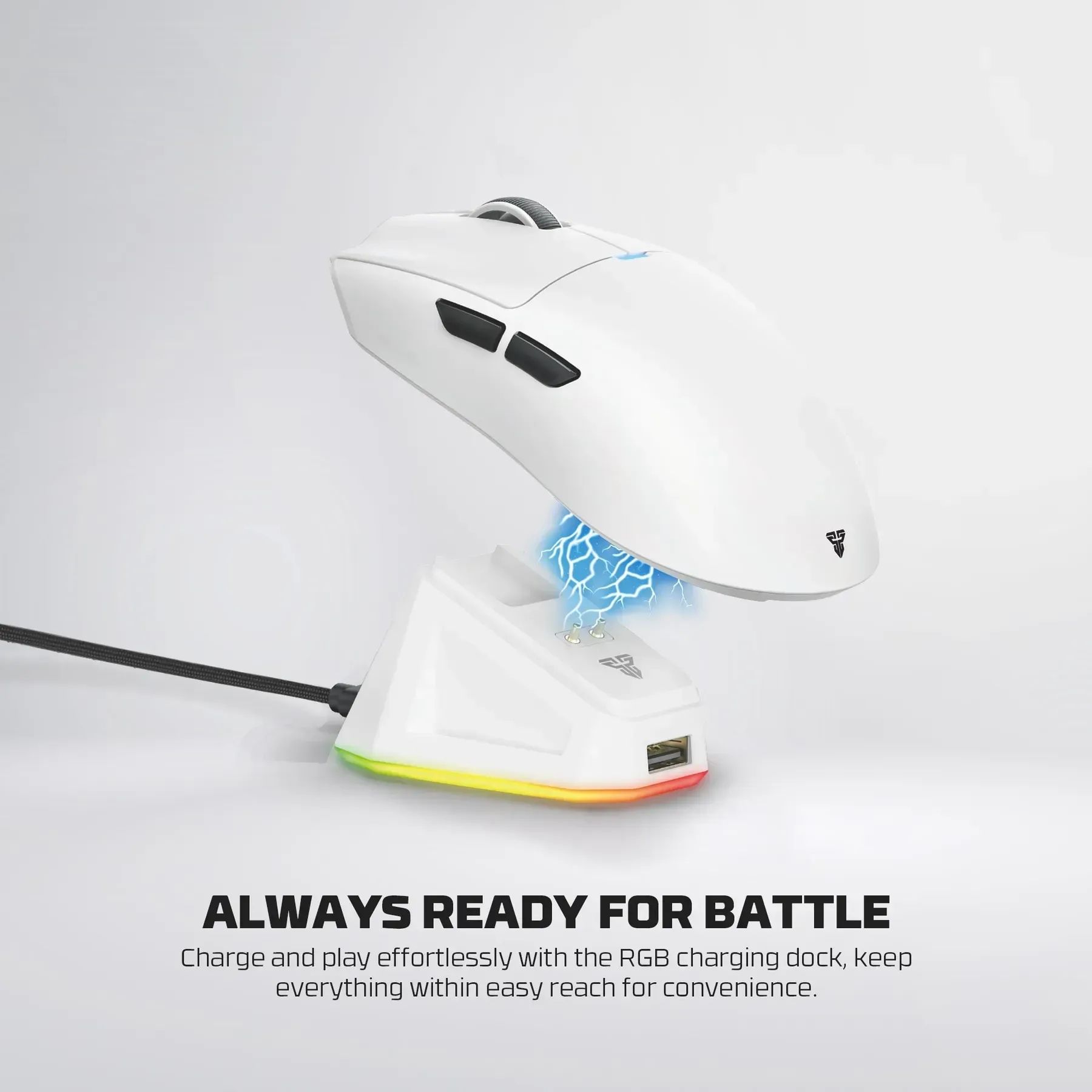 Вбудований акумулятор із ємністю 300 mAh забезпечує до 44 годин автономної роботи. Для зручності заряджання передбачена магнітна док-станція, яка дозволяє швидко встановити мишу на зарядну базу без підключення кабелю.