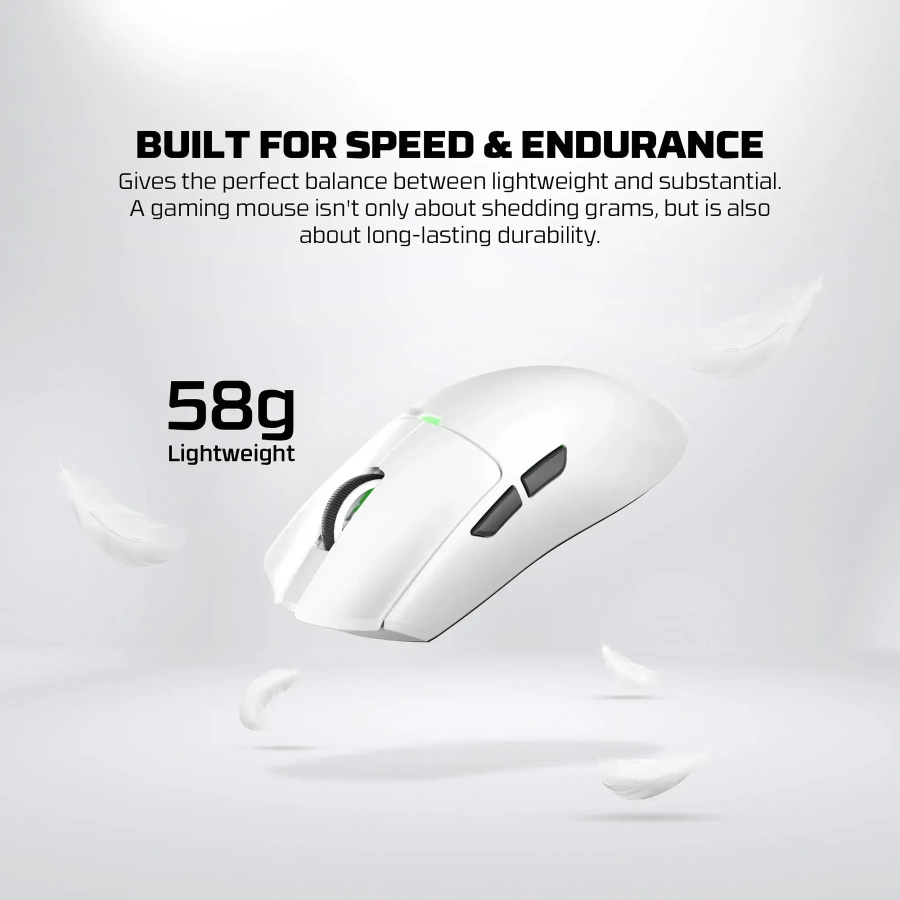 - Вага всього 58 г значно знижує навантаження на руку та дозволяє виконувати швидкі рухи з високою точністю навіть під час тривалих ігрових сесій.