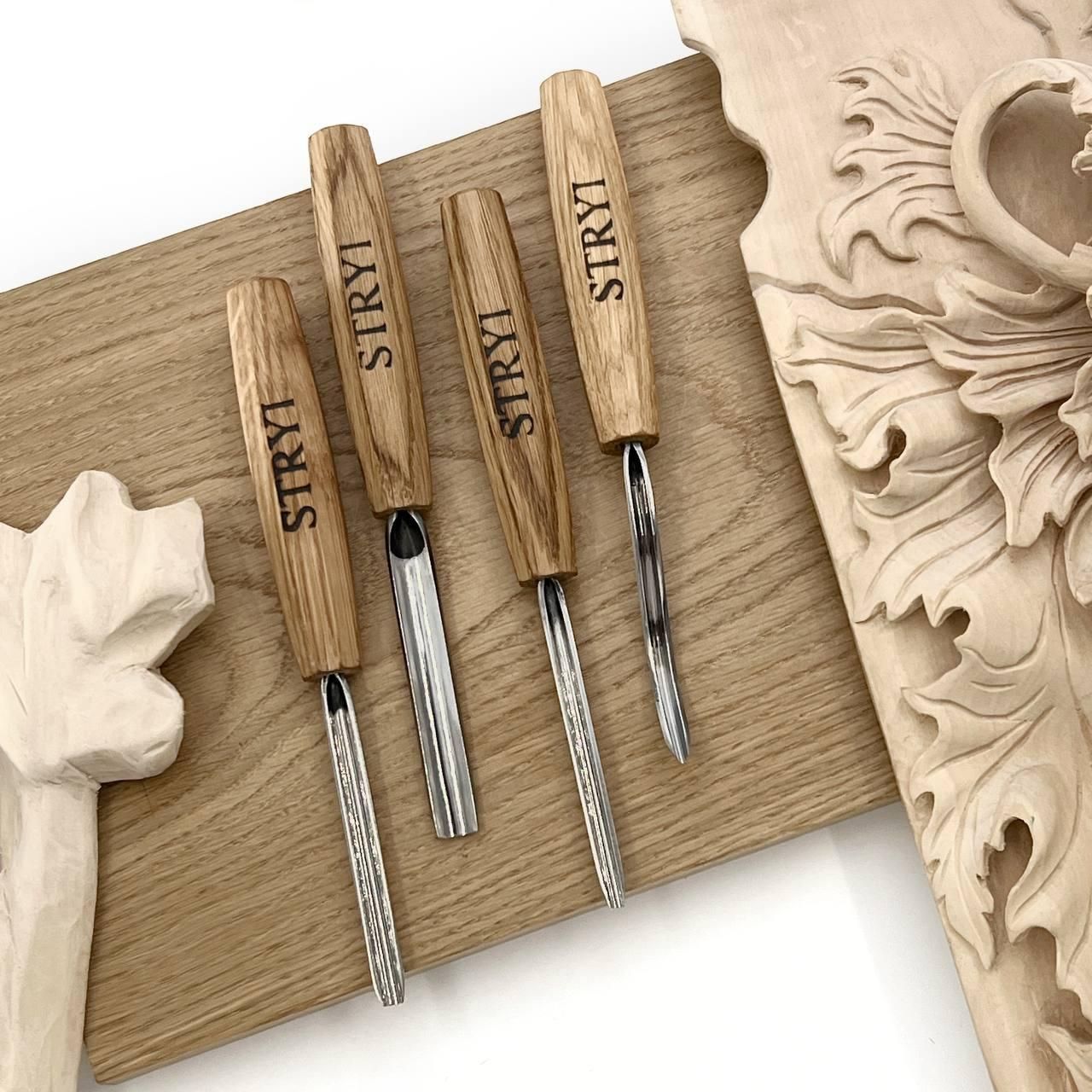 Набір STRYI для вирізання кукси з дерева: 3 інструменти та заготовка з липи
