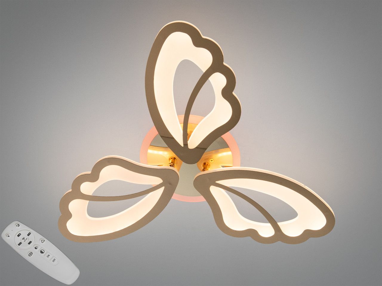SMART LED люстра 50W "Golden Wings", 3 пелюстки + 3-кольорова підсвітка, Золото (55 см)