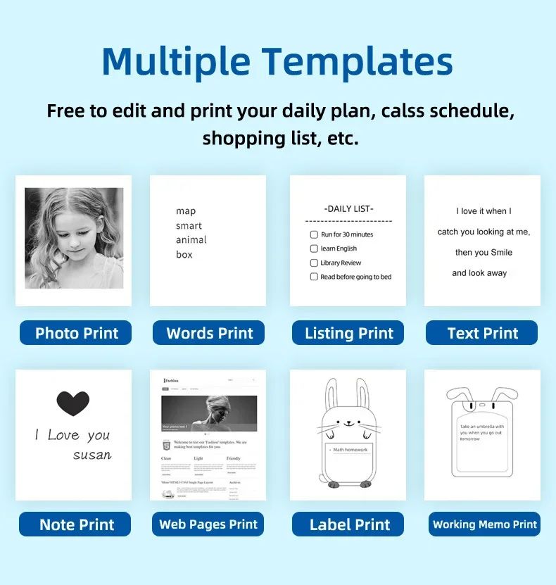 Пристрій ідеально підходить для повсякденного використання: навчання, ведення нотаток, оформлення щоденників, друкування чек-листів, фотографій та наклейок. Компактний розмір дозволяє завжди носити принтер із собою.