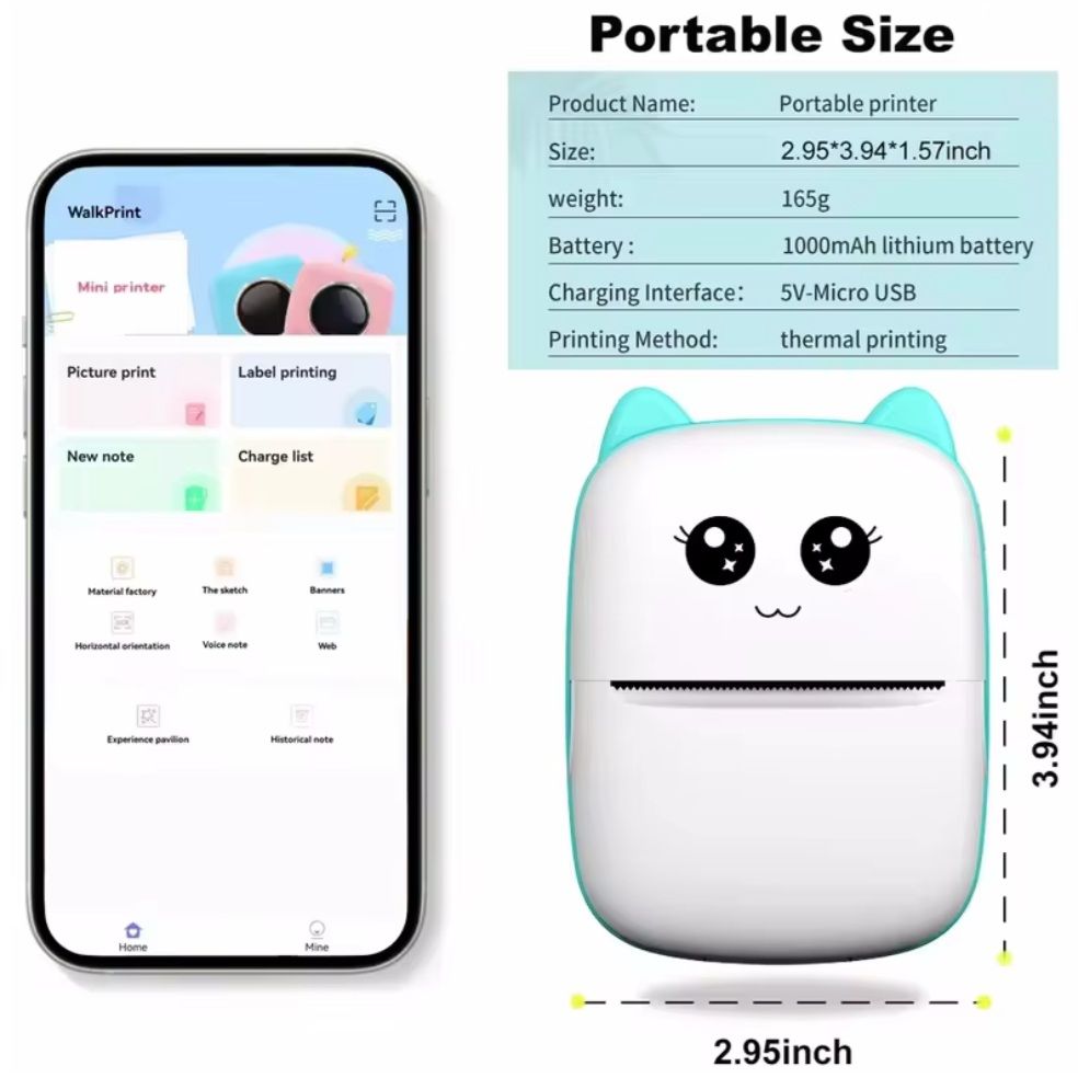 Міні-термопринтер Mini CAT BT – це компактний та зручний пристрій для бездротового друку фото, нотаток, стікерів та різних шаблонів прямо зі смартфона. Завдяки підтримці Bluetooth та спеціальному додатку, цей принтер легко підключається до пристроїв на базі Android та iOS, забезпечуючи швидкий та простий процес друку без дротів.