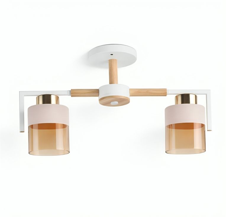 Люстра стельова на 2 плафони з елементами дерева VALESO XL25020-2 для спальні та передпокою Білий