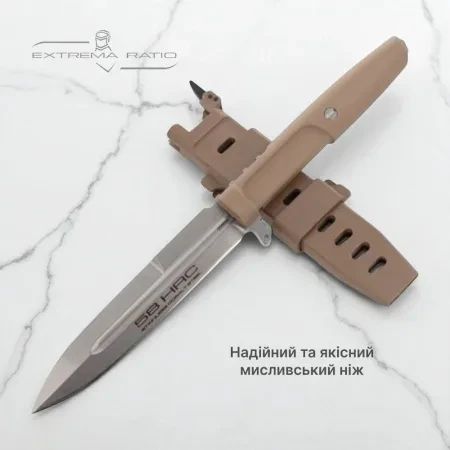 Ніж Extrema Ratio створінь для тих, хто цінує надійність у кожній деталі. Суцільний хвостовик проходить крізь усю рукоятку, що забезпечує додаткову міцність та баланс. Рукоятка зручно лежить у руці та не ковзає навіть у вологих умовах. Піхви з ударостійкого пластику — дуже зручні та надежно фіксують ніж. Ідеальний вибір для походів, виїздів та активного відпочинку.