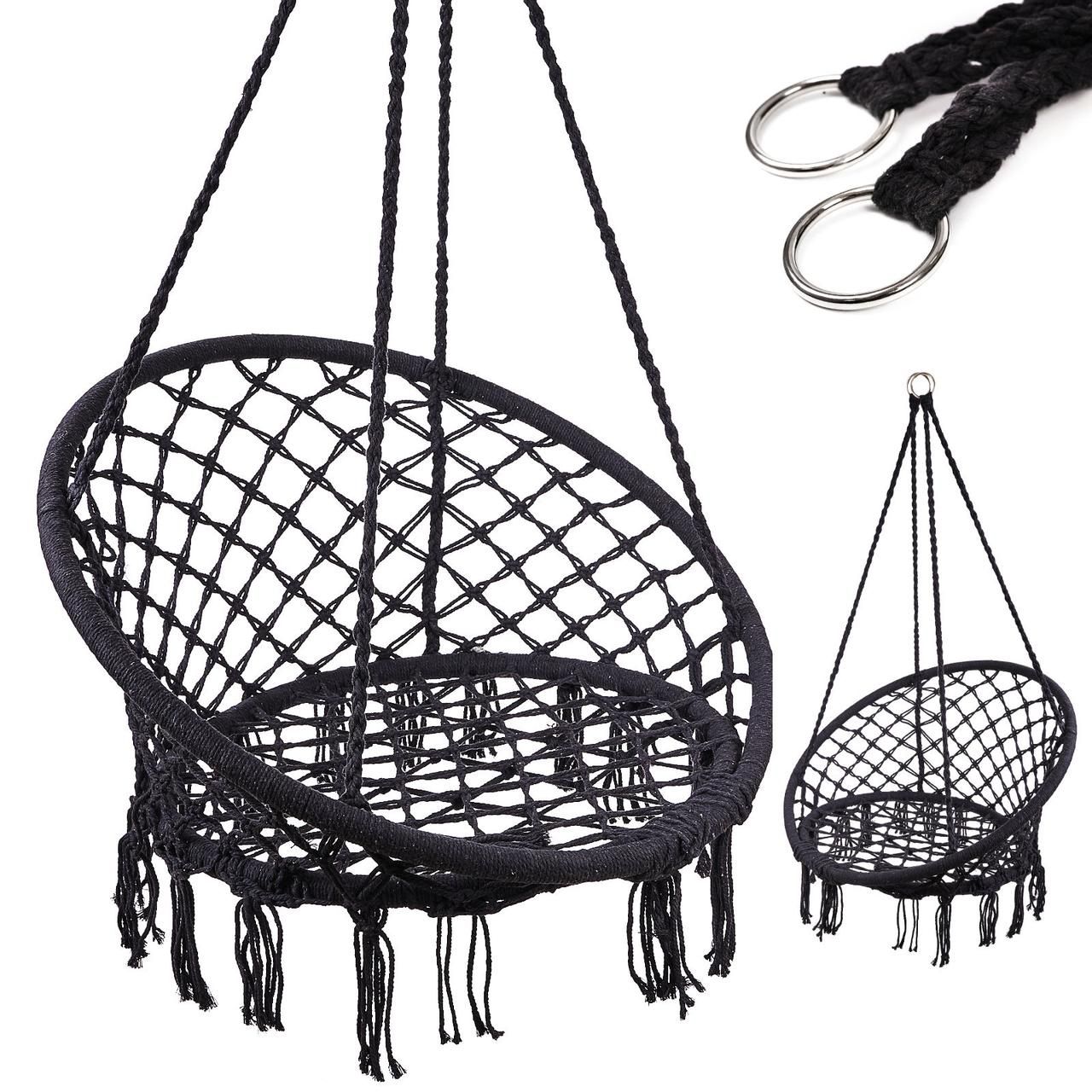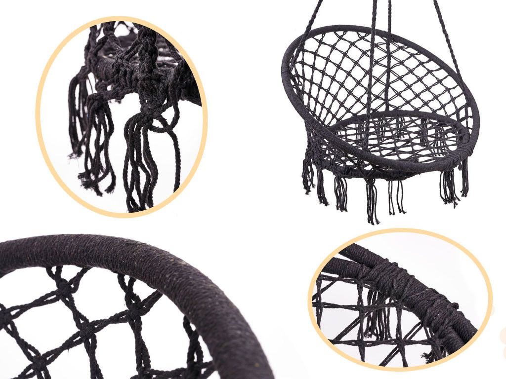 Садова гойдалка плетене підвісне крісло Boho чорне