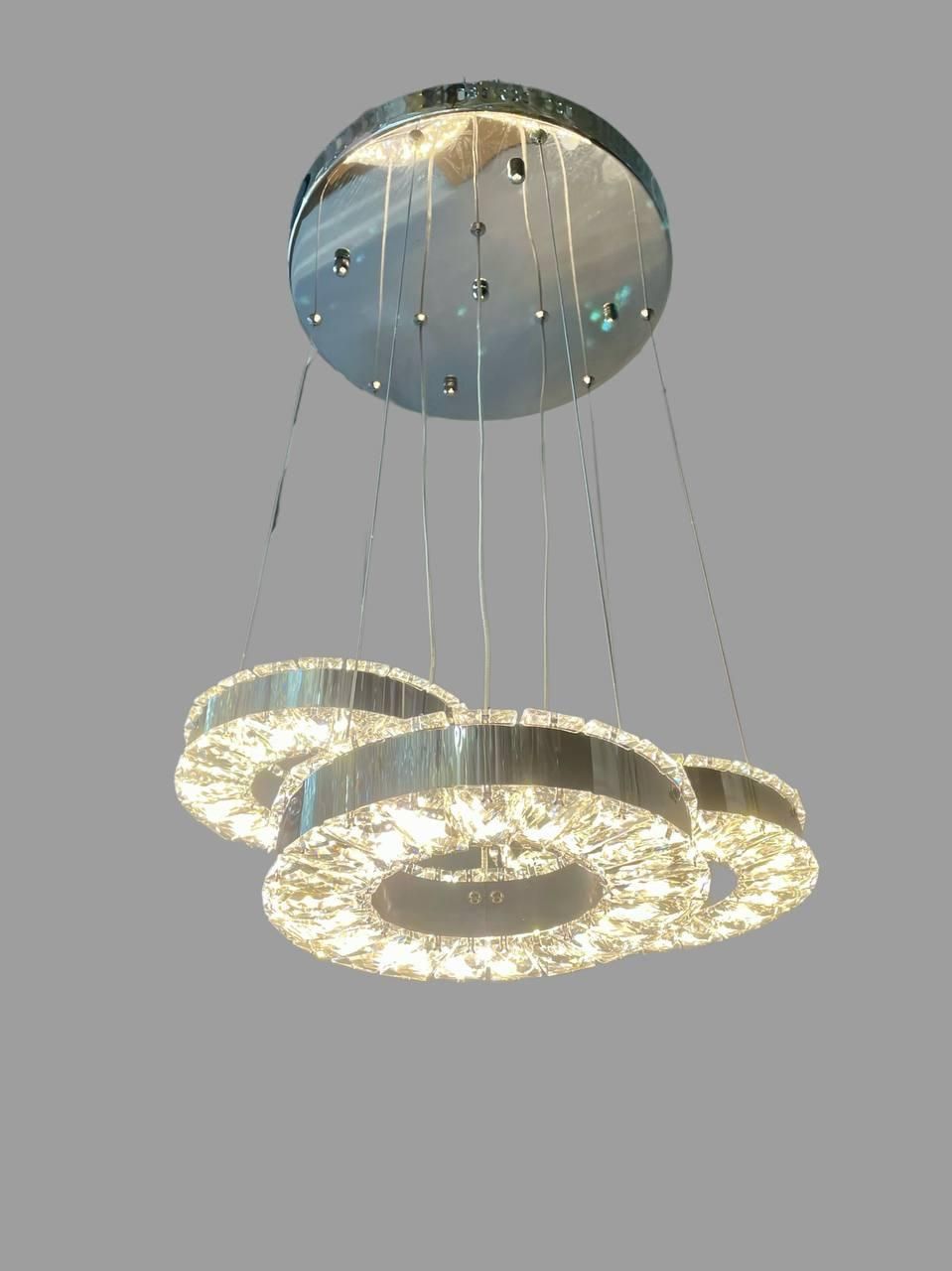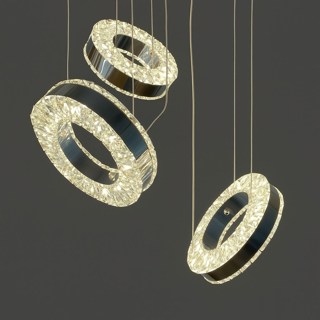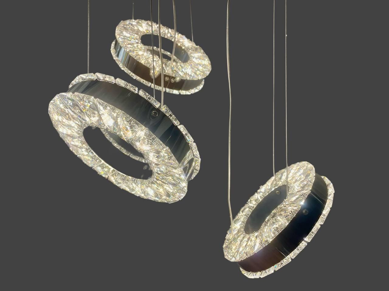 Елегантна LED люстра з кристалічними підвісками у формі кільця – стильне рішення для акцентного освітлення. Завдяки вбудованому драйверу, ви можете вибрати потрібну колірну температуру (3000K/4000K/6000K), а сам корпус чудово вписується в сучасні інтер'єри від хай-теку до ар-деко. Використовується у житлових та комерційних зонах Києва, Харкова, Львова.