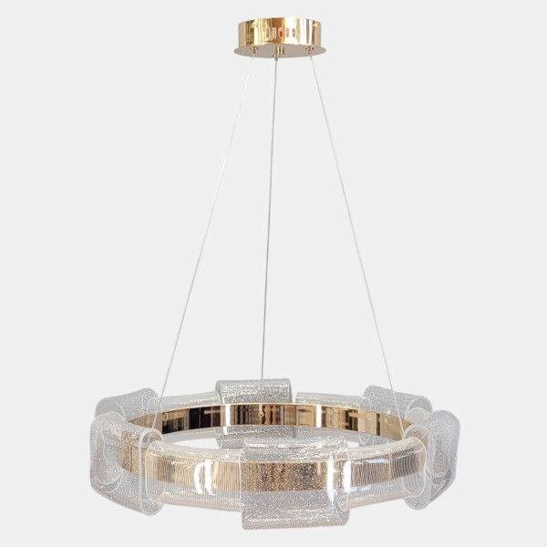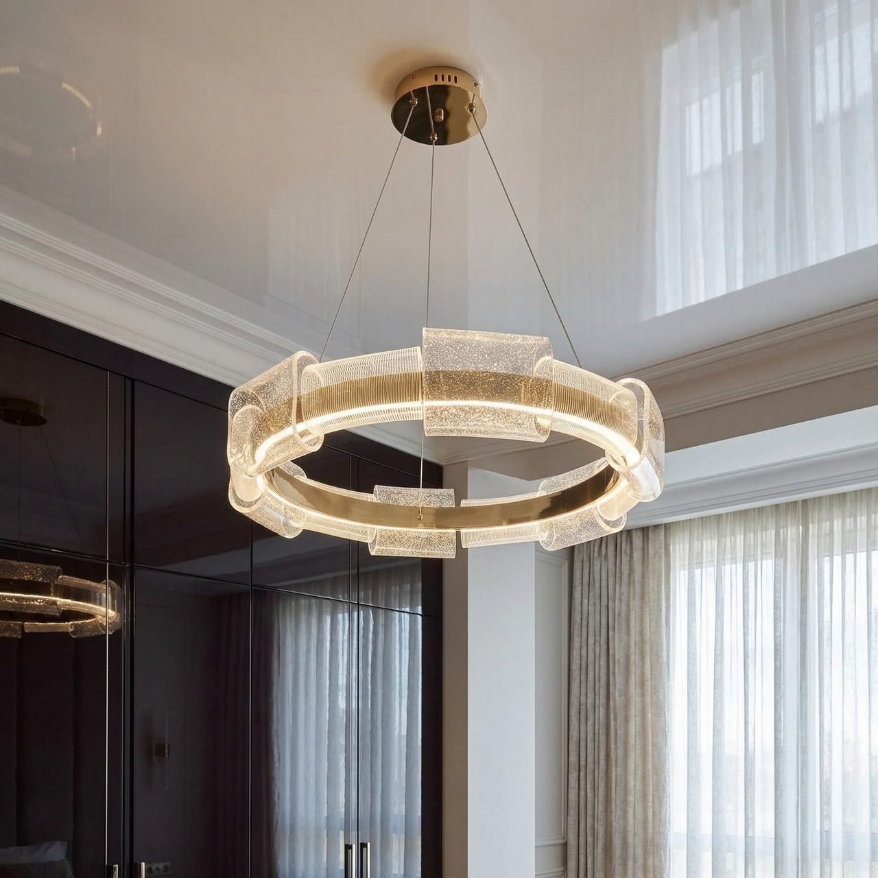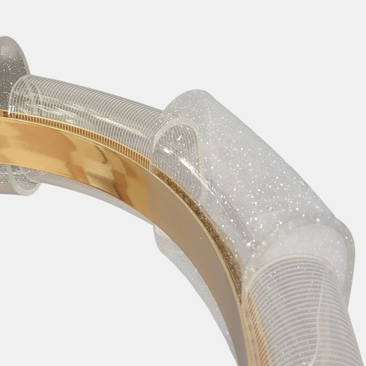 Дизайн моделі базується на концепції «нескінченного сяйва». Золотисте металеве кільце слугує основою для прозорих акрилових сегментів з особливою рельєфною фактурою. Це не просто джерело світла, а повноцінний арт-об'єкт, який виглядає стильно як у ввімкненому, так і у вимкненому стані.