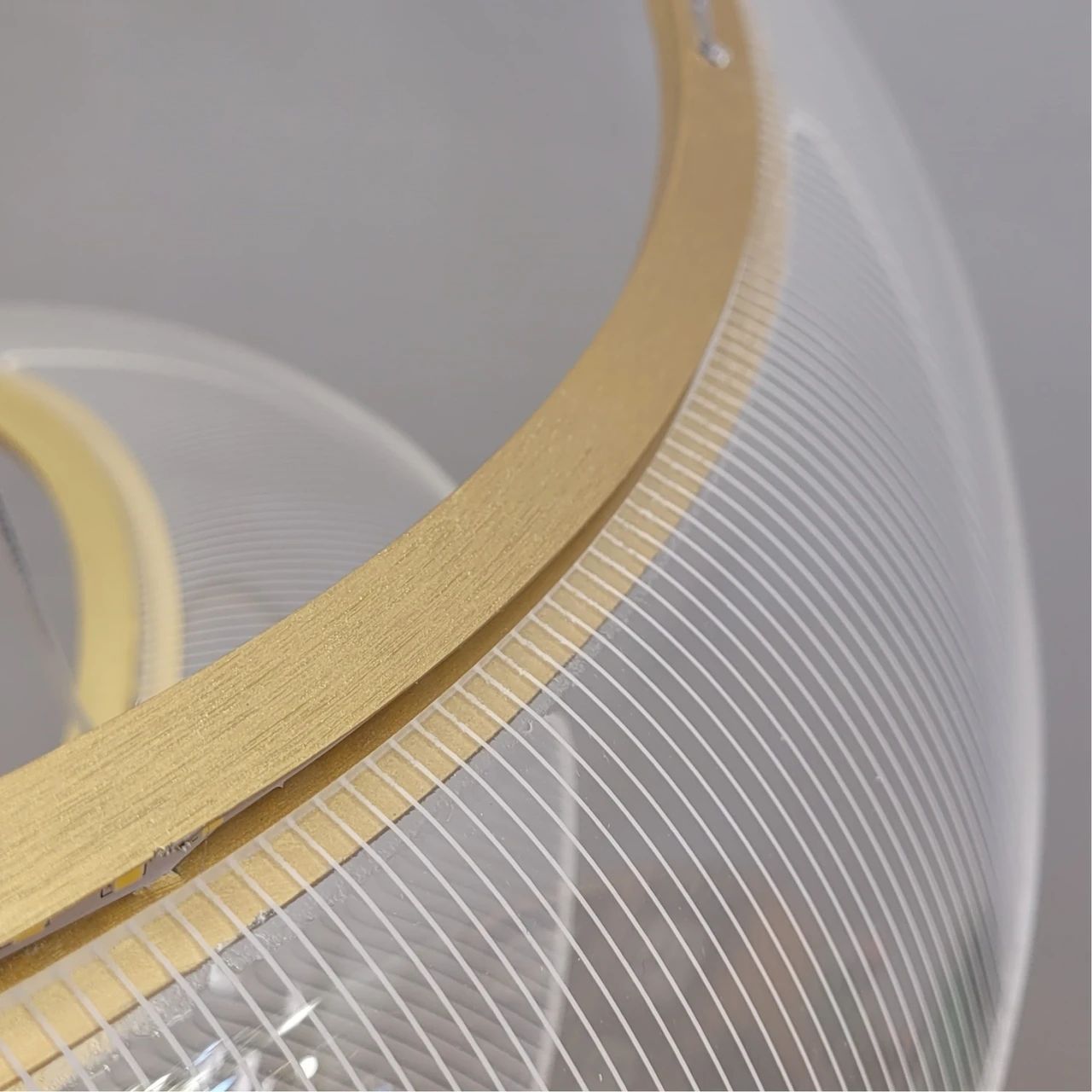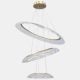 Дизайн моделі базується на концепції багаторівневості та технологічної естетики. Три кільця різних діаметрів розташовані каскадом, забезпечуючи рівномірне заповнення світлом навіть великих за об'ємом приміщень. Прозорий акриловий розсіювач зі спеціальною фактурою м'яко заломлює промені, створюючи іскристе нейтральне світіння, що нагадує блиск дорогоцінного каміння.
