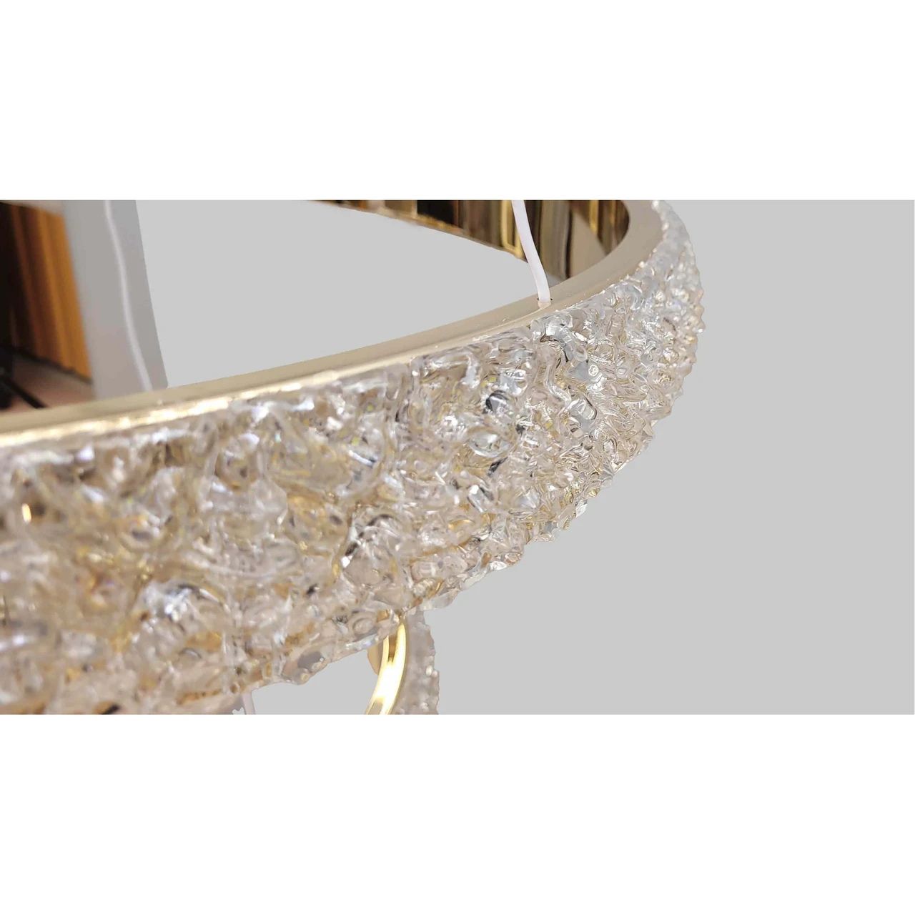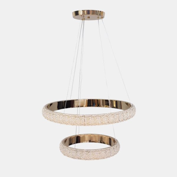 Дизайн моделі побудований на гармонії геометричних форм та гри світла. Два кільця діаметрами 58.0 см та 38.0 см мають дзеркальне золоте покриття з внутрішньої сторони та фактурний розсіювач із зовнішньої. Спеціальна структура пластику імітує блиск кришталевої крихти, що дозволяє світлу м'яко заломлюватися та створювати іскристі відблиски.
