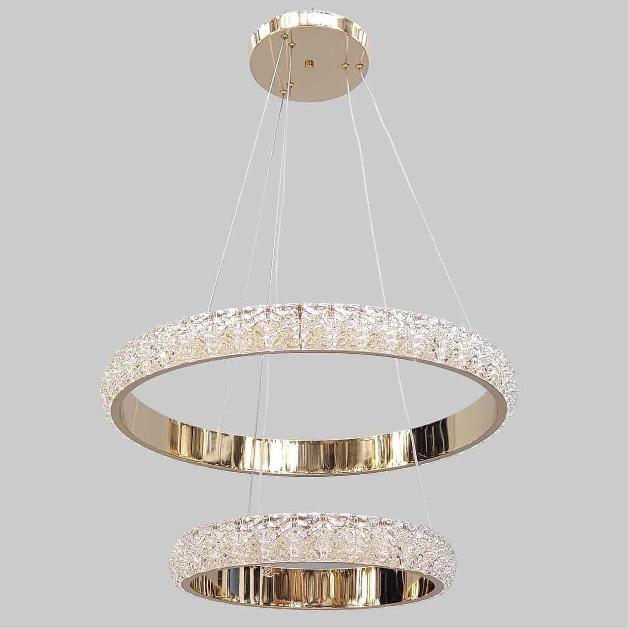 Індивідуальна геометрія: Завдяки системі незалежних підвісів, ви можете самостійно налаштувати висоту та кут нахилу кожного кільця, створюючи унікальну світлову скульптуру під вашою стелею.