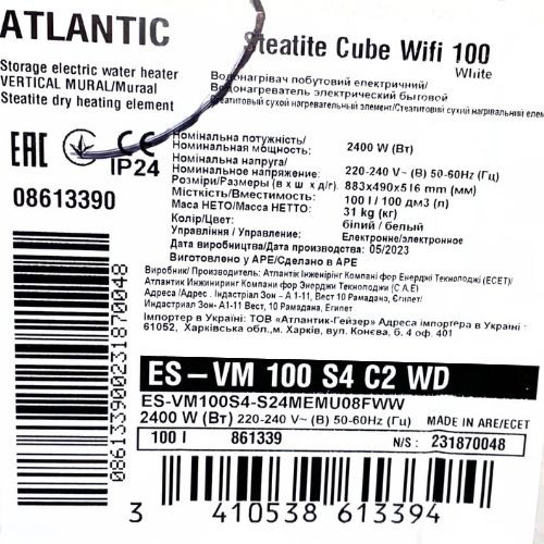 Atlantic Steatite Cube Бойлер 150 літрів WI-FI ES-VM 150 S4 С2 WD 2400W White