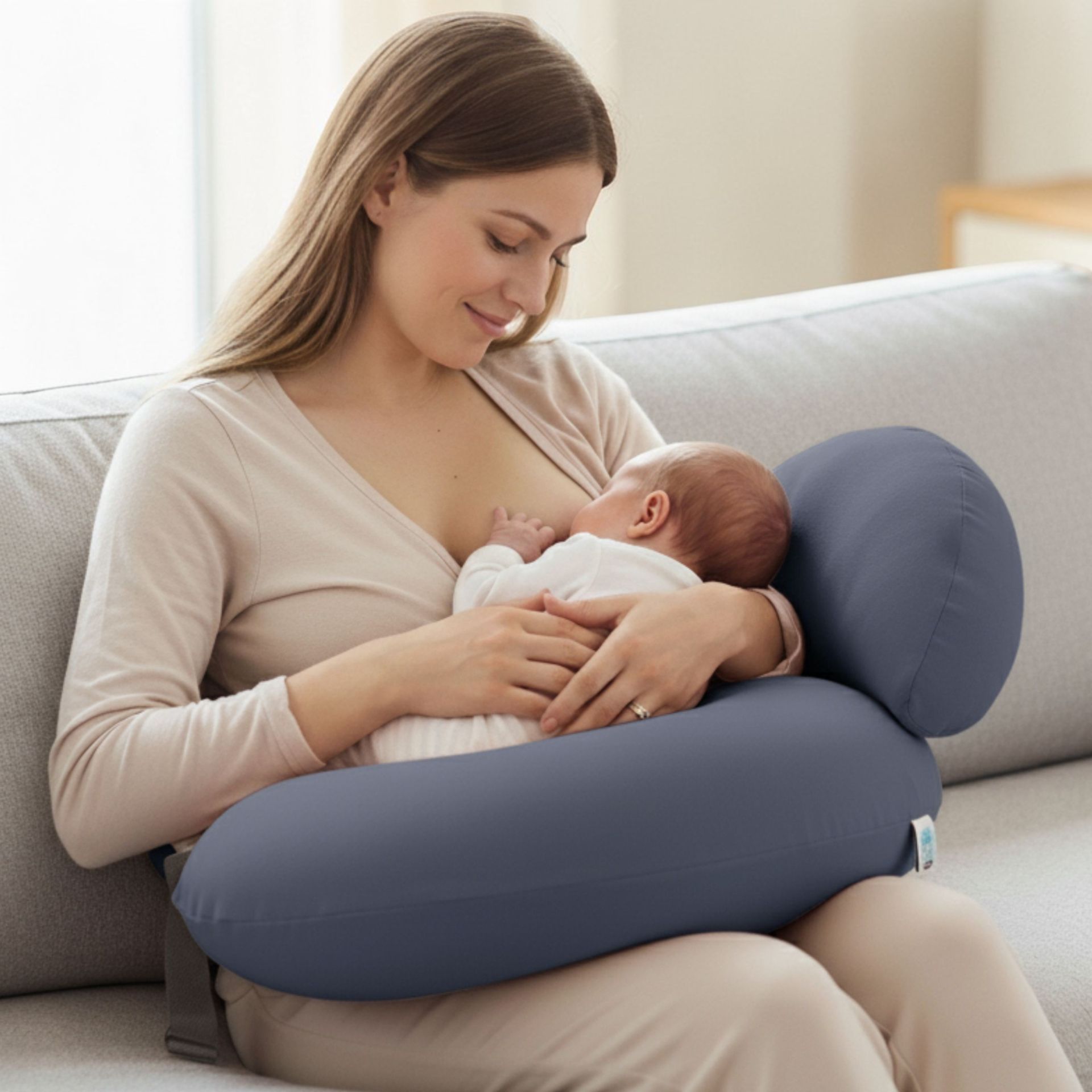 Подушка-Диванчик допомагає зручно розташувати дитину під час грудного або пляшкового вигодовування. Вона підтримує малюка на комфортній висоті, зменшує навантаження на руки, плечі та спину мами і створює затишне місце для годування.