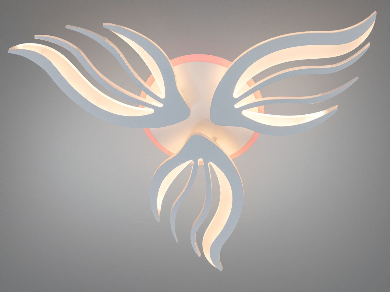 Ця сучасна світлодіодна люстра потужністю 52W створена для кімнат площею до 12 м². Мінімальна висота корпусу (8 см) у поєднанні з дизайном у формі крил вирішує проблему освітлення приміщень із низькими стелями, забезпечуючи м'який світловий потік 2860 lm та додатковий декоративний ефект за рахунок контурного підсвічування.