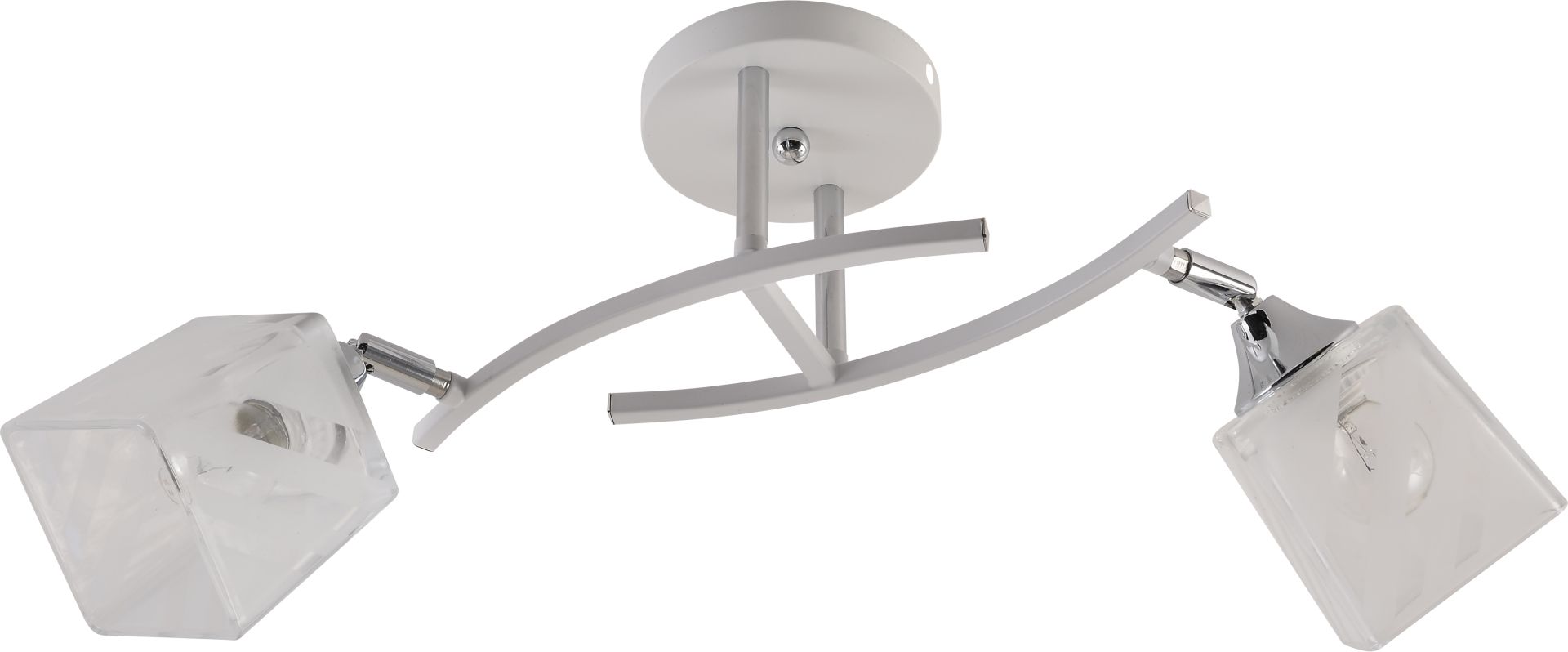 Каркас виконаний у поєднанні білого кольору з хромованими елементами, що підкреслює сучасний стиль світильника. Білий колір додає легкості та універсальності, а хром забезпечує елегантний блиск і завершеність дизайну.