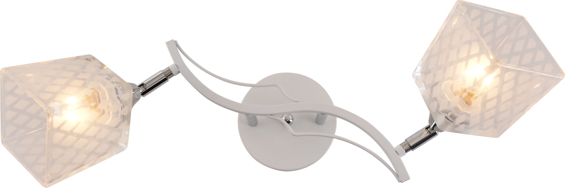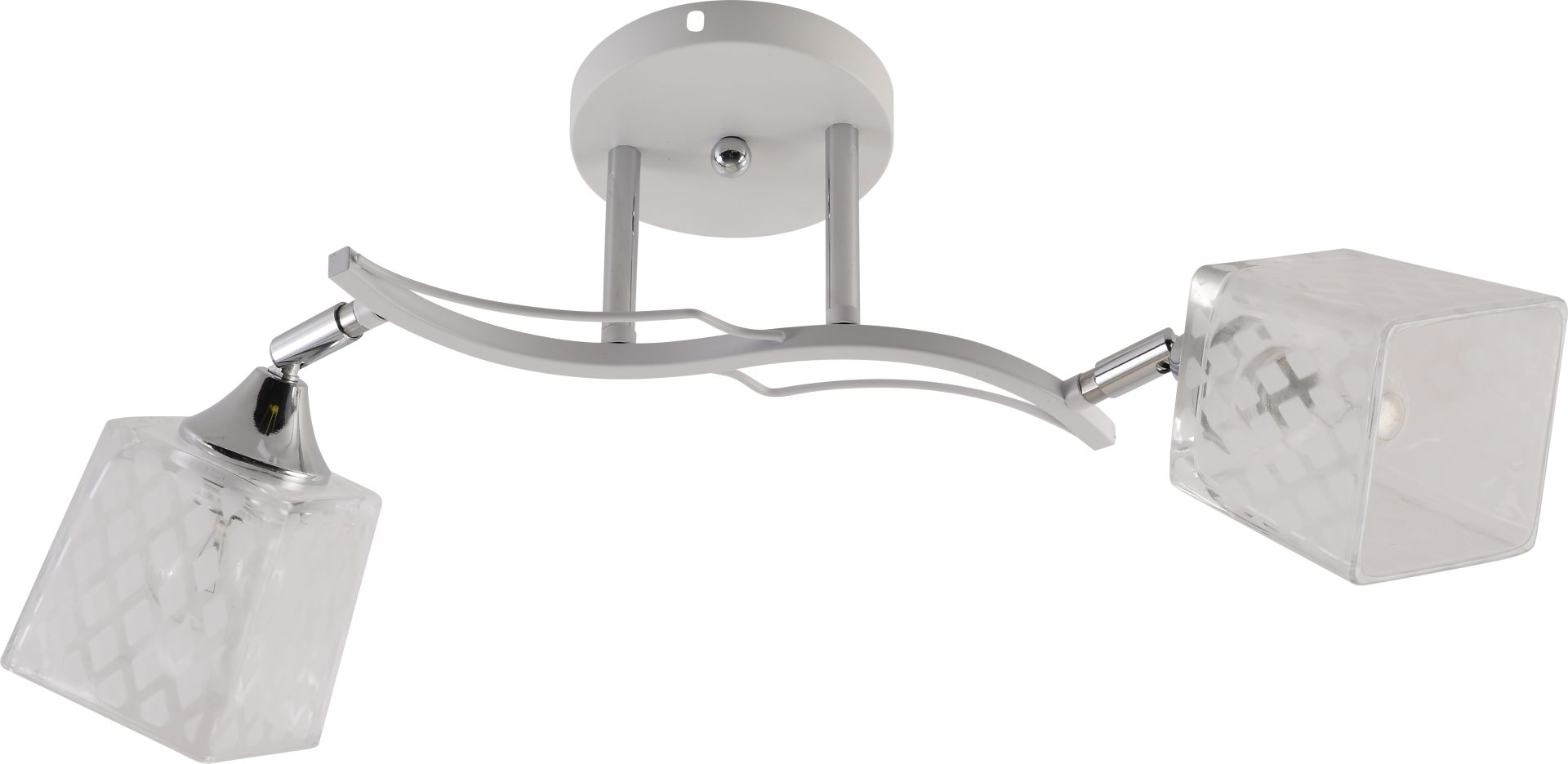 Люстра IS XA1594-2 WH+CR — це стильне та функціональне рішення для сучасного інтер’єру. Модель оснащена двома скляними плафонами квадратної форми, виконаними з прозорого скла з матовим декором у вигляді дрібних ромбів, що створюють м’яку та приємну гру світла.