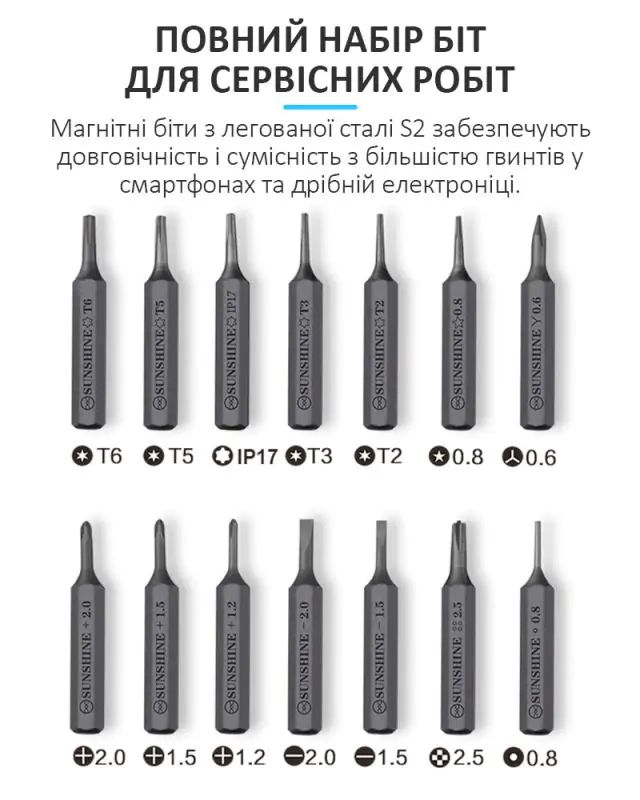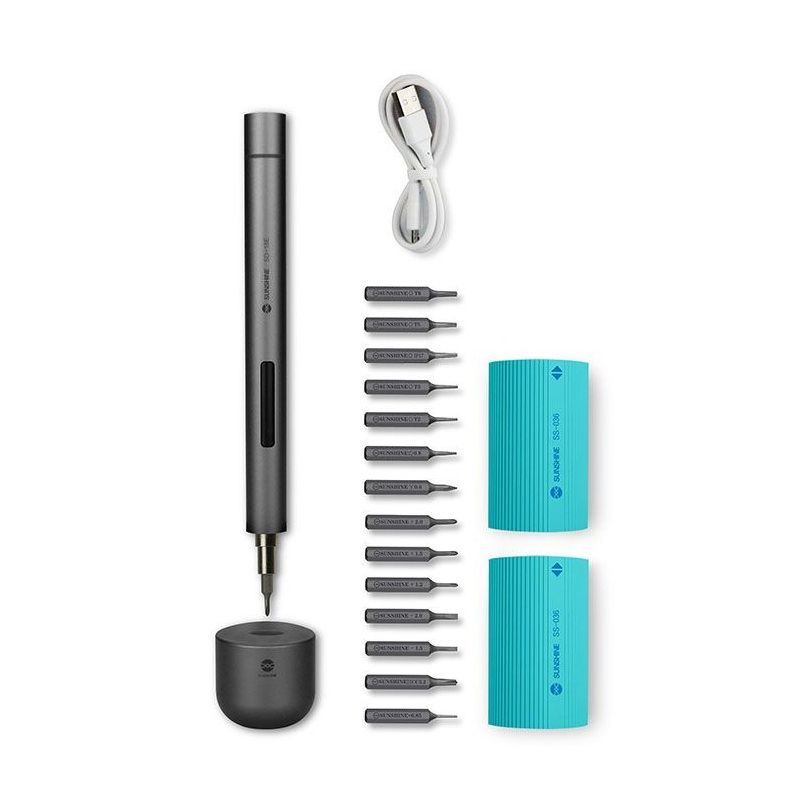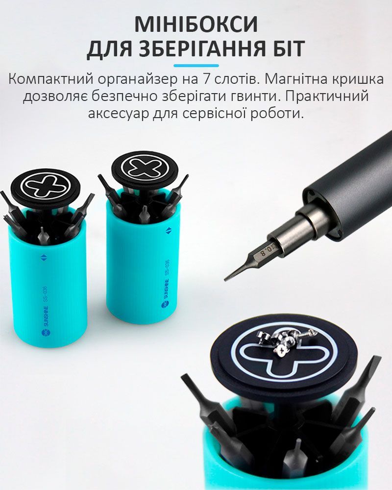 Акумуляторна викрутка SUNSHINE SD-18E / прецизійна / підсвічування / набір біт 14 шт. / iPhone 17