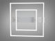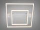 Модель виконана у стилі геометричного мінімалізму. Конструкція складається з двох світлових квадратів різного розміру, розташованих один в одному, що створює ефект об’ємної світлової рамки. Корпус виготовлений з металу з якісним білим матовим покриттям, а розсіювачі — з оптичного акрилу. Така форма забезпечує рівномірне заповнювальне освітлення без різких тіней, а білий колір робить прилад майже непомітним на фоні світлої стелі у вимкненому стані.
