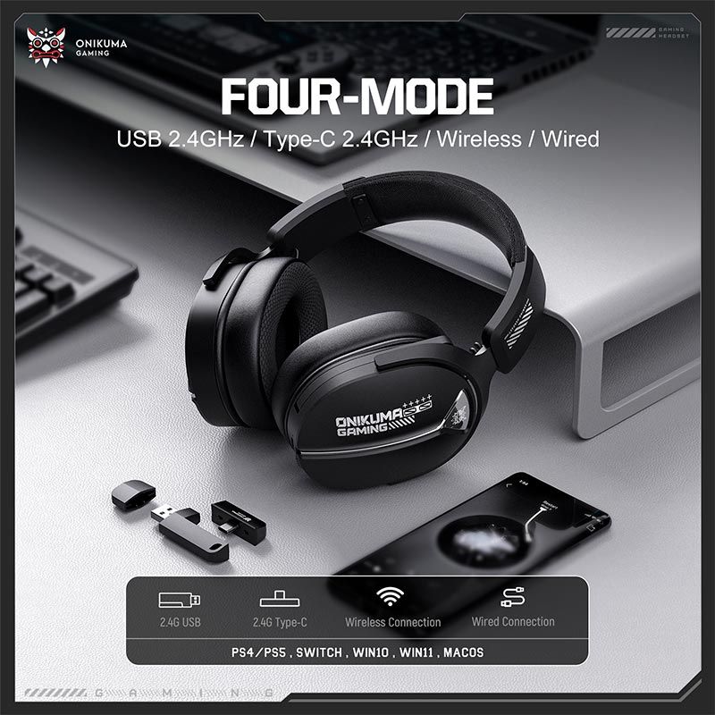 Навушники Onikuma Tri Mode headphones GT887 | BT5.4/2.4G/Type-C, 20/60H | black