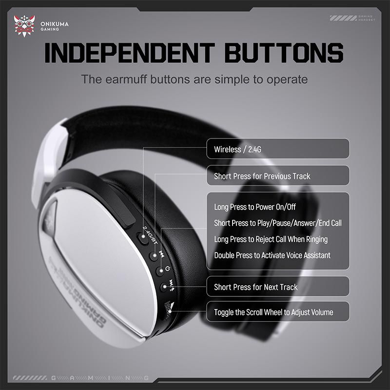 ONIKUMA GT887 - це сучасна бездротова ігрова гарнітура з підтримкою трьох режимів підключення (Tri-Mode), що забезпечує максимальну універсальність та високу якість звуку. Модель підходить для використання з ПК, ноутбуками, ігровими консолями та мобільними пристроями, дозволяючи легко перемикатися між платформами.