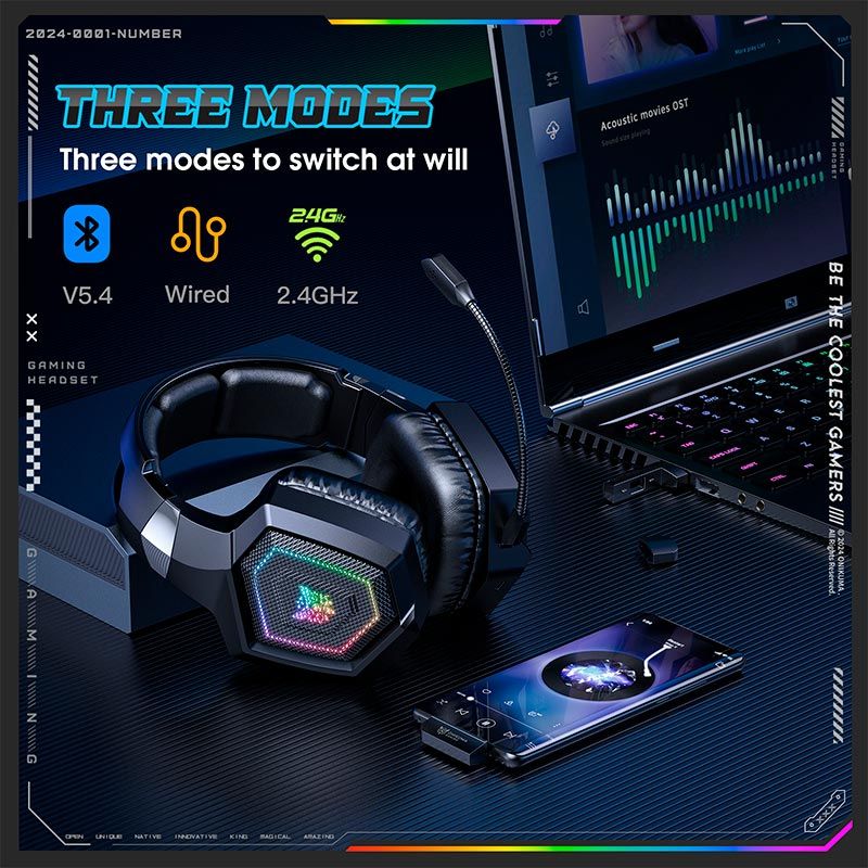Навушники Onikuma Tri Mode gaming headphones GT826 | BT5.4/2.4G/Type-C, 15/80H, RGB | black