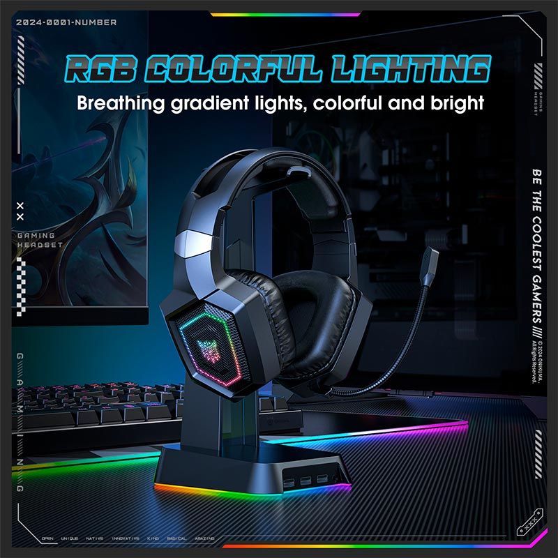 Навушники Onikuma Headset B100 |BT5.3/2.4G, Type-C, PS4/PS5/PC/Mac/iOS/Android, RGB| black
