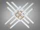 Дизайн моделі базується на концепції лінійної геометрії: вісім світлових «променів» перетинаються під прямим кутом, утворюючи складну решітку на стелі. Корпус виготовлений з металу з якісним білим порошковим фарбуванням, що додає приладу візуальної невагомості. Розсіювачі з матового акрилу створюють рівні світлові смуги без видимих точок світлодіодів, забезпечуючи м'яке заповнювальне освітлення на 180 градусів.
