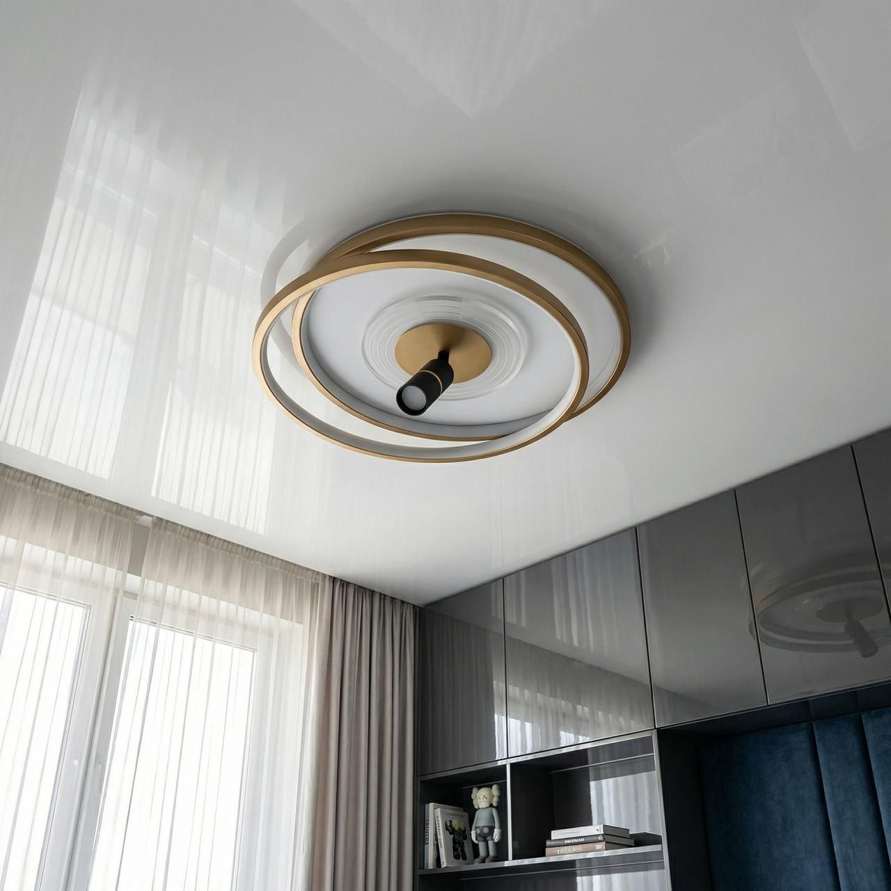 Інноваційне світлове рішення для дитячих кімнат та спалень площею до 14–16 м². Поєднання двох світлових кілець та функціонального прожектора дозволяє одночасно створювати затишну атмосферу та забезпечувати яскраве спрямоване світло для навчання або ігор.