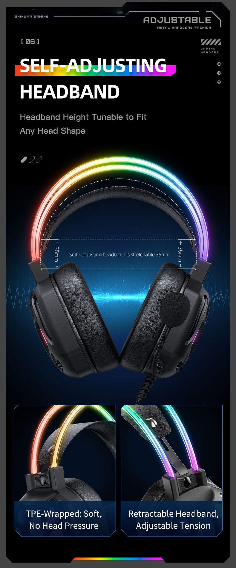 - Стильне підсвічування з ефектами дихання та переливів підкреслює ігровий стиль і робить цю гарнітуру частиною сучасного сетапу.