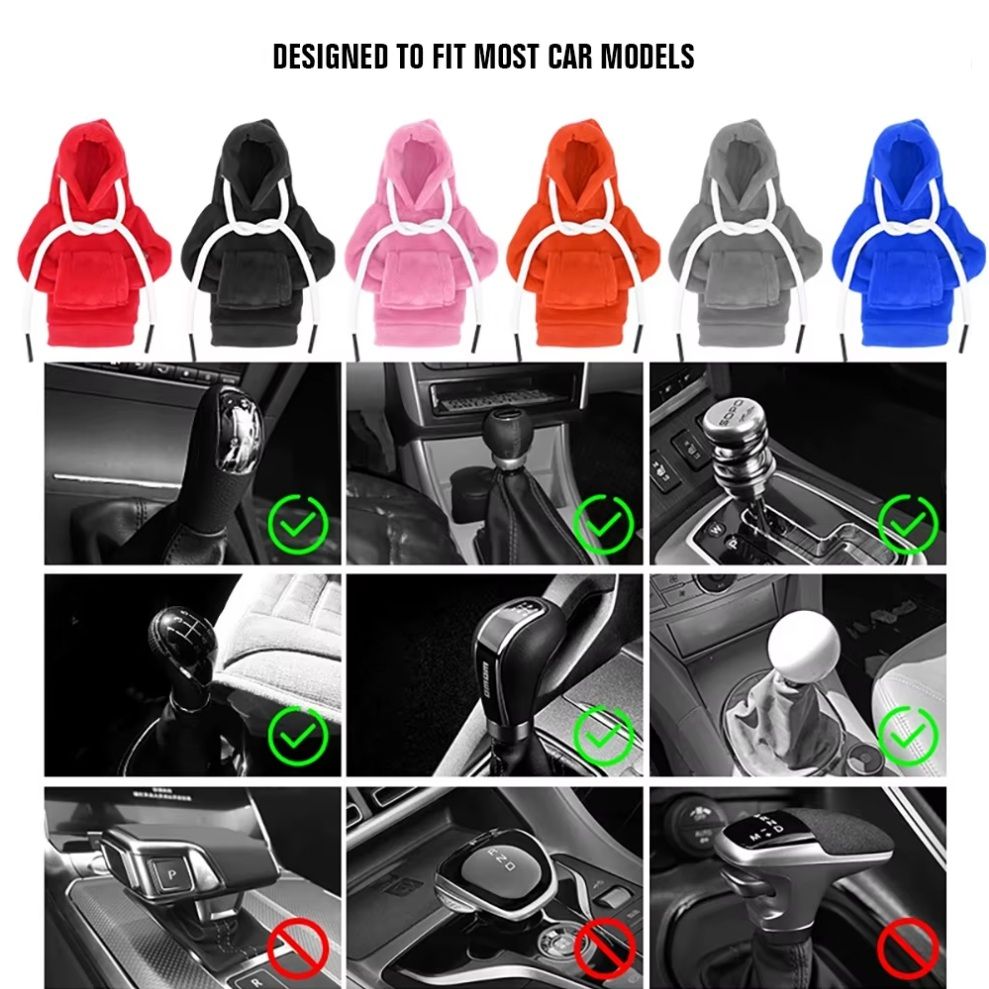 Стильний та незвичайний аксесуар для інтер'єру автомобіля – чохол у вигляді міні-толстовки з капюшоном. Він не тільки прикрашає салон, але й робить використання важеля перемикання більш комфортним. Підходить для більшості автомобілів з механічною та автоматичною коробкою перемикання передач завдяки універсальному розміру.