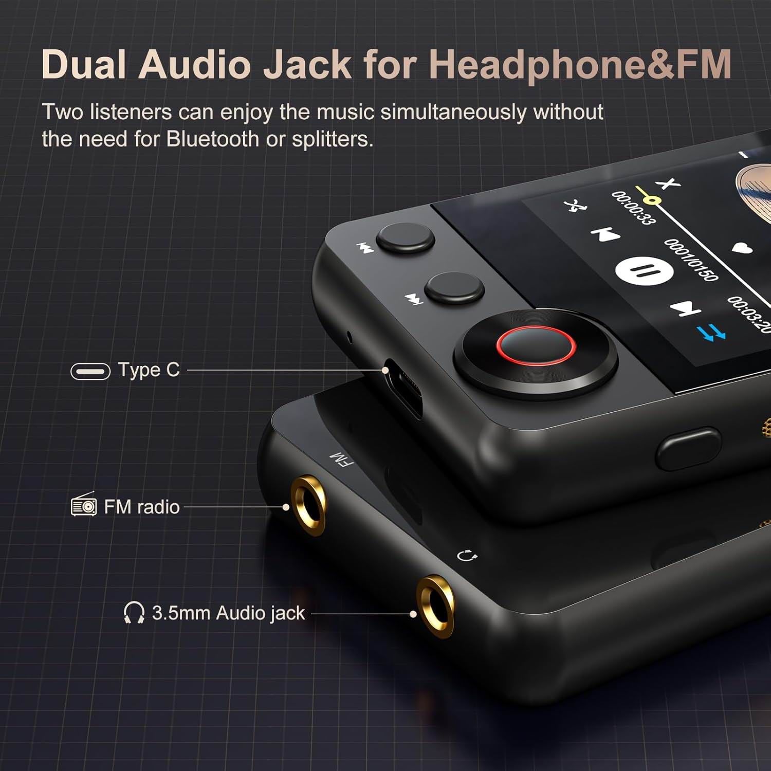 128 ГБ суперпам'яті Цей MP3-плеєр MECHEN з Bluetooth має 128 ГБ вбудованої пам'яті та підтримує розширення картою пам'яті до 512 ГБ. Легко зберігайте понад 10 000 пісень, тому вам не доведеться турбуватися про нестачу пам'яті. MP3-плеєр Bluetooth 5.3 Використовує найсучаснішу технологію Bluetooth 5.3 для стабільнішого з'єднання, кращої сумісності та меншого енергоспоживання. Ви можете підключити MP3-плеєр Bluetooth до бездротових навушників або Bluetooth-колонок. Зверніть увагу, що підключення до автомобільного Bluetooth, мобільного телефону та ПК не підтримується. Якість звуку Hi-Fi без втрат Вбудований з високоякісними динаміками та потужним аудіодекодером, що відновлює найоригінальнішу високоякісну якість звуку музики, забезпечуючи вам кращий музичний досвід. Підтримувані музичні формати: MP3/WMA/APE/FLAC/WAV/AAC тощо. Нова функція пошуку пісень Наразі одноядерні плеєри на ринку не мають можливості швидкого пошуку пісень. Щоб задовольнити побажання наших клієнтів, ми розробили функцію швидкого пошуку пісень. Вводячи літери або слова, які потрібно знайти, ви можете швидко знайти потрібну пісню та досягти своїх цілей. Щодо конкретних операцій, будь ласка, зверніться до окремого пояснення на сторінці з детальною інформацією нижче. Багатофункціональний MP3-плеєр Цей Hi-Fi MP3-плеєр також пропонує інші функції, включаючи відео (потрібно конвертувати перед відтворенням), FM-радіо, фотографії, електронні книги, шпалери, будильник, секундомір тощо. Легкий та портативний, цей музичний плеєр стане чудовим супутником для навчання, відпочинку та спорту. Високоякісний дизайн та обслуговування клієнтів Цей портативний MP3-плеєр має розміри 8,9 x 4,9 x 1,9 см і важить лише 90 г, що робить його ідеальним для перенесення. Компактний корпус чудово лежить у руці.