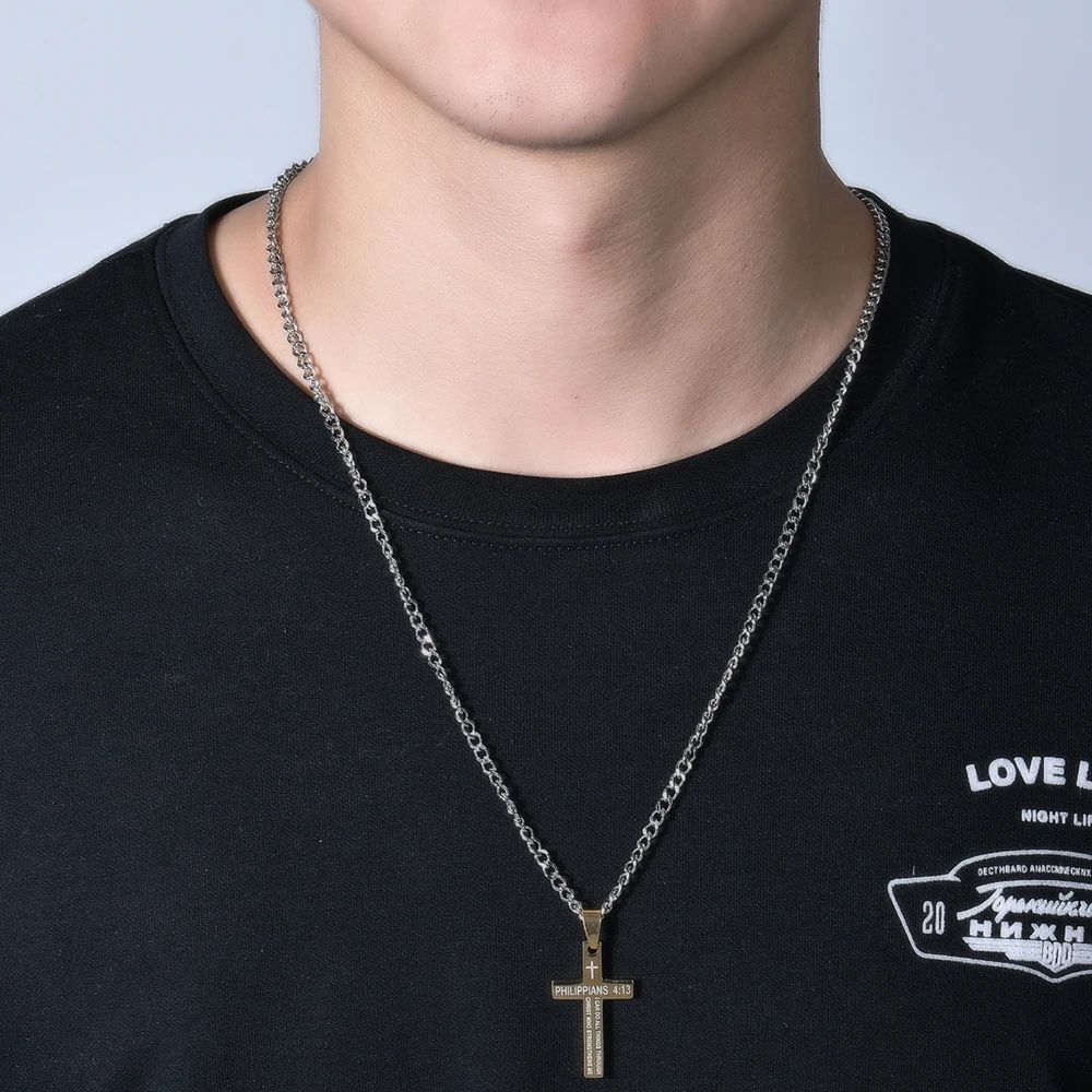 Чоловічий кулон хрест До филип'ян 4:13 з молитвою Philippians підвіска у вигляді чорного хреста