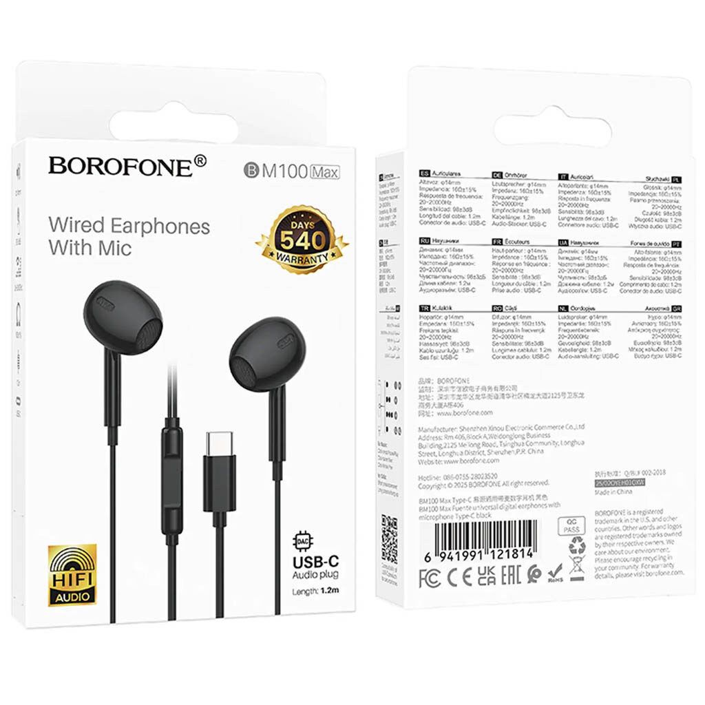 Borofone BM100 Max — это современная проводная гарнитура с цифровым подключением, разработанная для устройств без стандартного аудиоразъёма 3.5 мм. Модель сочетает мощные динамики увеличенного диаметра, встроенный DAC-чип и эргономичную конструкцию, обеспечивая насыщенное звучание и комфорт при ежедневном использовании.