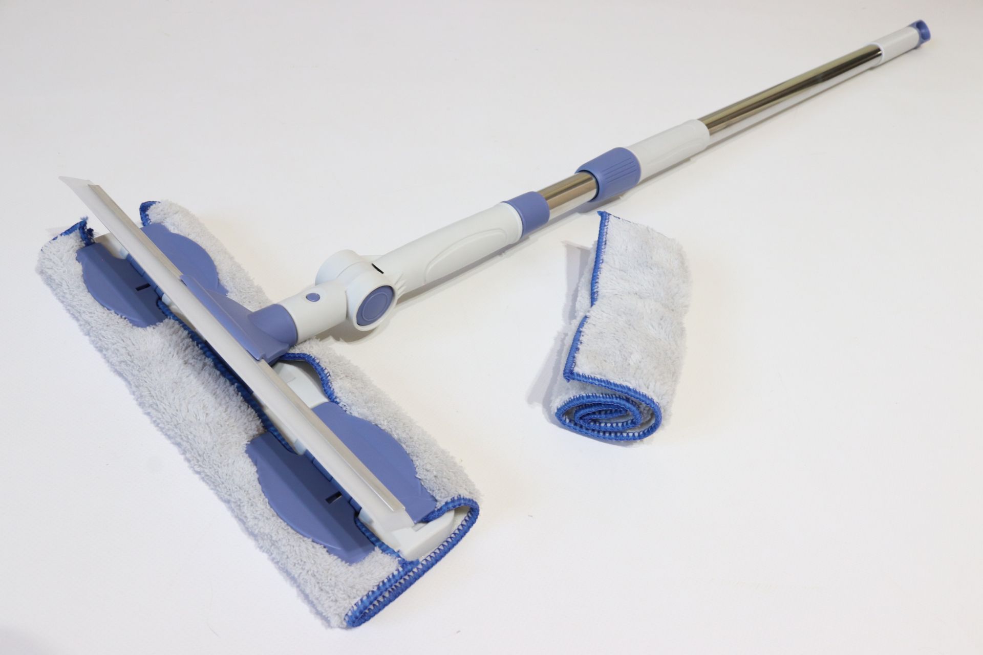 Ця модель вікномийки оснащена телескопічною ручкою, яка розкладається до 135 см, що дозволяє легко дістатися до високих вікон без драбини. Поворотна головка 360° — легко очищає важкодоступні місця. Насадка з мікрофібри — делікатно видаляє бруд і пил ( в комплекті є також додаткова насадка). Силіконовий водозгін — ефективно прибирає воду без розводів