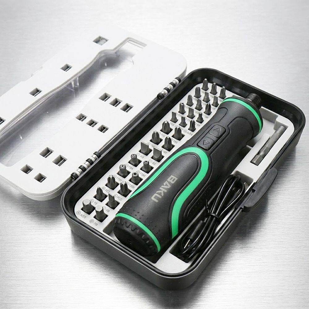 Baku B-0001 - це багатофункціональна електрична викрутка у форматі набору «41 в 1», яка поєднує компактність, високу продуктивність і розширену комплектацію. Інструмент відмінно підходить для ремонту електроніки, збирання меблів та виконання різних побутових завдань. Завдяки продуманій конструкції, вбудованому підсвічуванню та широкому набору аксесуарів, ця модель стане надійним помічником як для професіоналів, так і для домашнього використання.