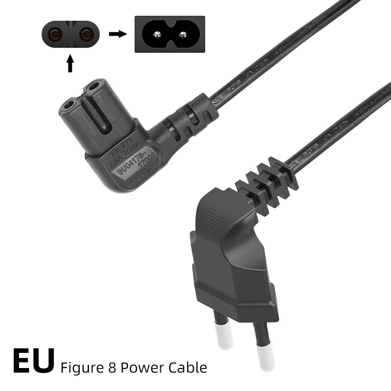 Кабель живлення 220V 150cm Black EU C7 to 2pin (16mm) кутові конектори (90 градусів) European IEC Figure 8