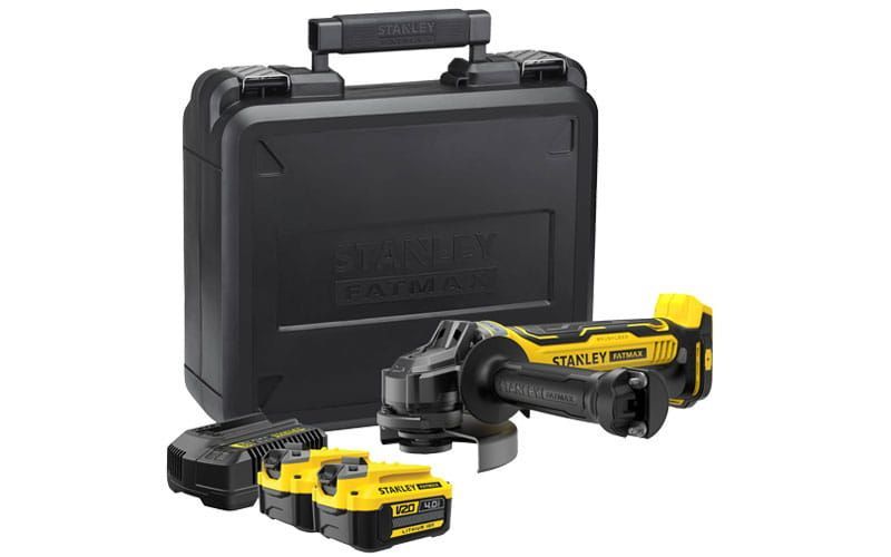 Безщіткова кутова шліфувальна машина Stanley V20 125 мм, 2 акумулятори по 4 Ач, кейс SFMCG700M2K-QW