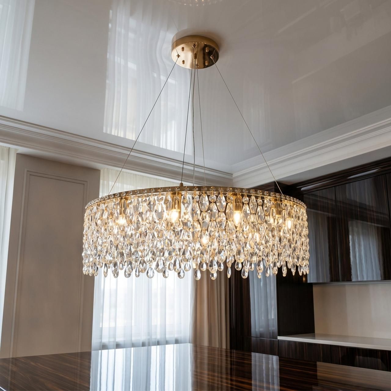 Важливо: через чималу вагу люстри монтаж має проводитися на надійне бетонне покриття або спеціально підготовлену посилену закладну конструкцію (у разі натяжного стелі). Рекомендується використовувати світлодіодні (LED) лампи форми «свічка» — вони найєднувальніші в кришталевих каскадах. Догляд полягає в періодичному очищенні підвісок спеціальною антистатичною щіткою або м'якою тканиною без ворсу.