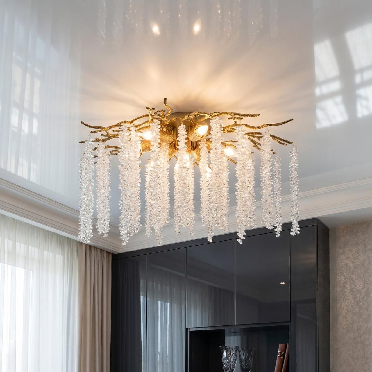 Унікальний флористичний дизайн: складана форма каркаса у формі гілок у поєднанні з кришталем виділяє цю модель серед стандартних люстр.