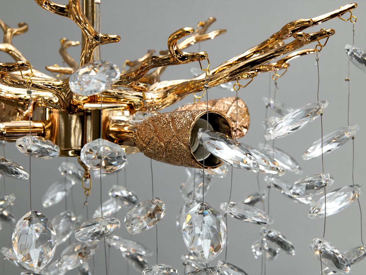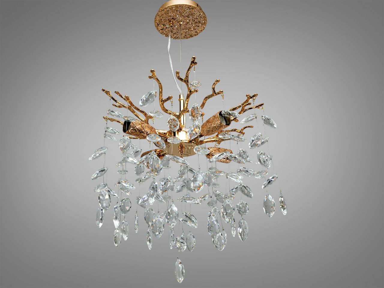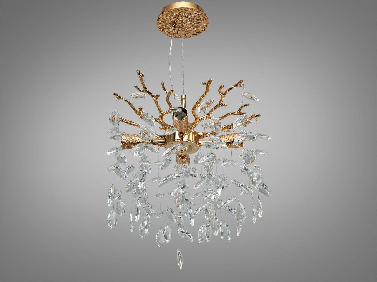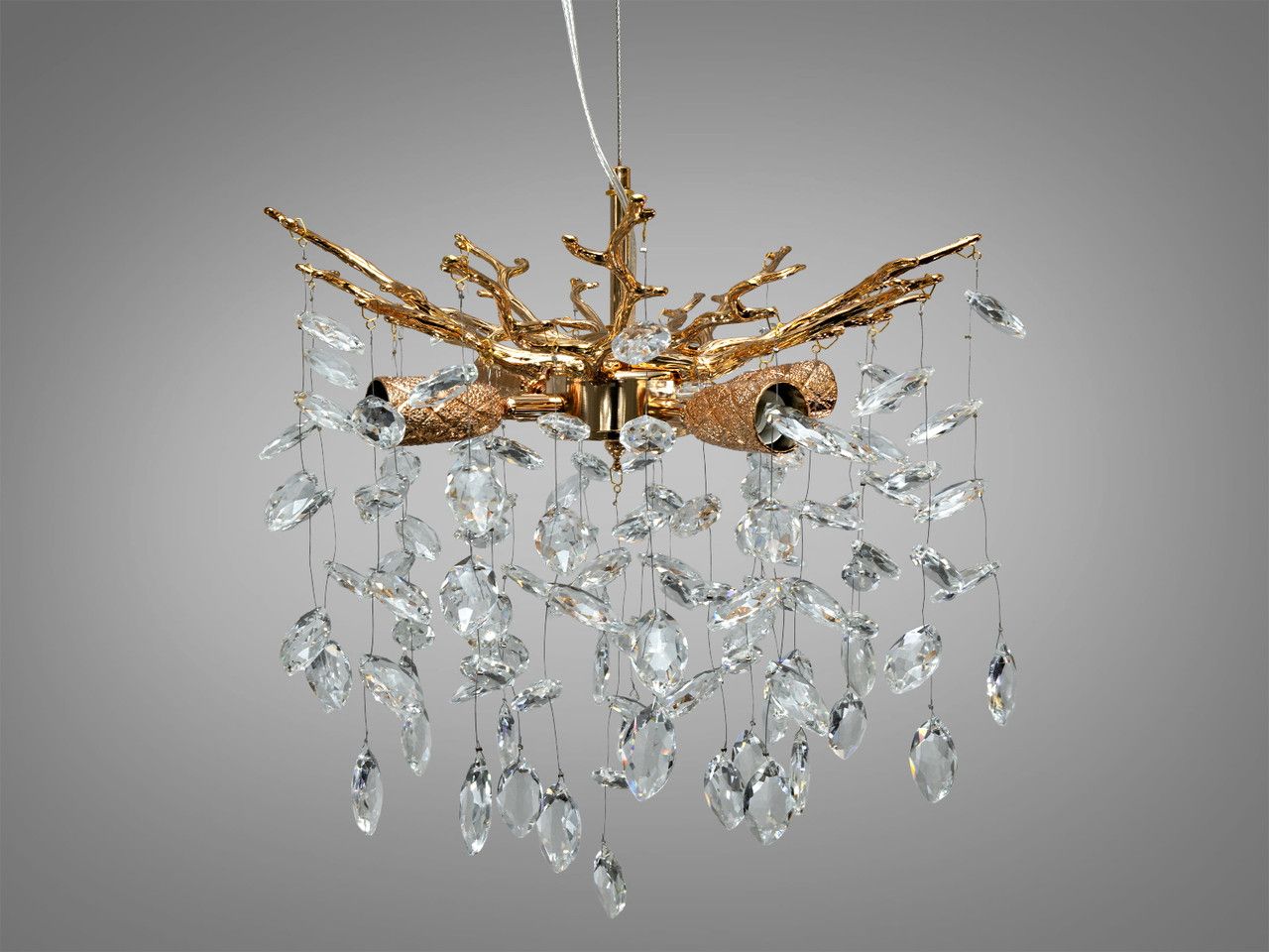 Дизайнерський кришталевий підвіс «Вітка» 4xE14 — Золото