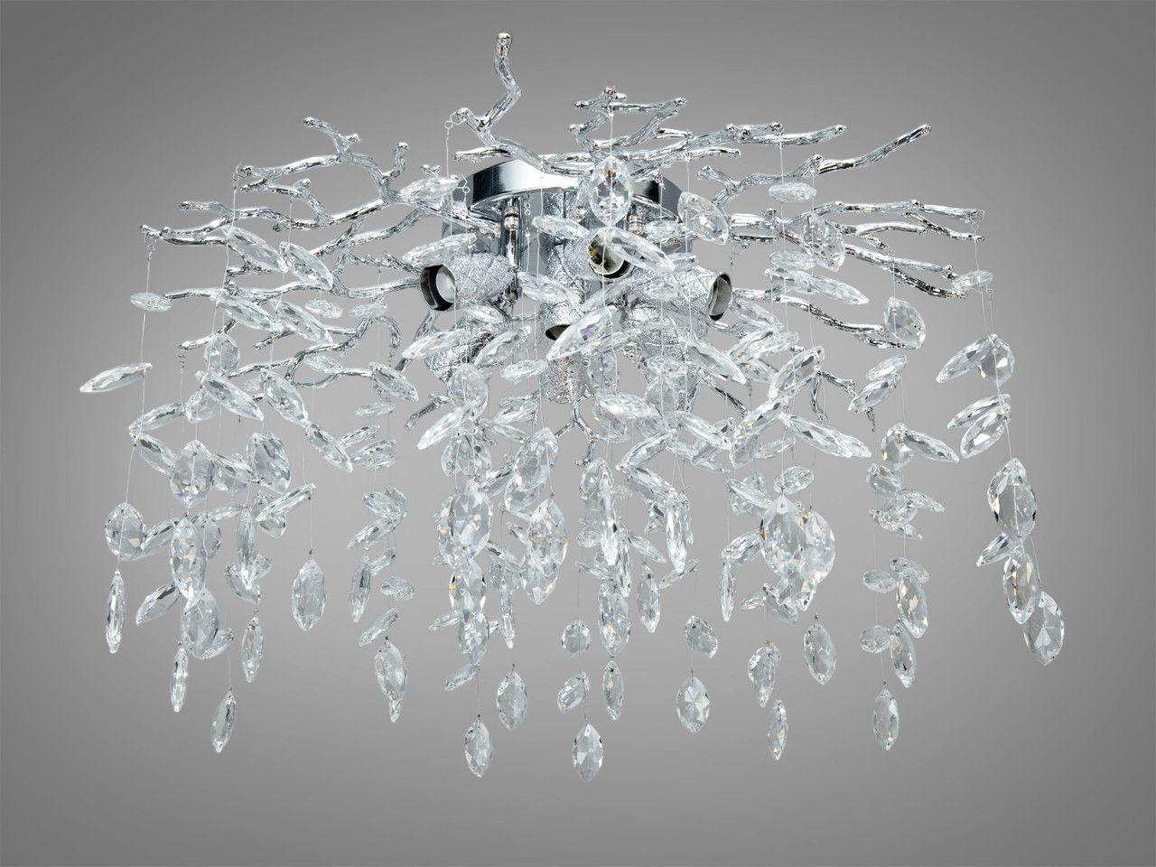 Дизайнерська стельова люстра «Кришталева гілка» 7xE14 - Хром