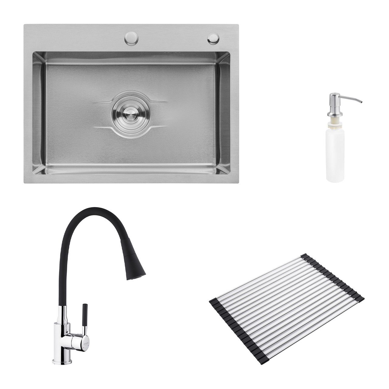 Комплект кухонна мийка Kroner Derby-5843HM Brush + cушарка для посуду Kroner Matte-SCH4333-2 + змішувач Kuche-C132BLK + дозатор