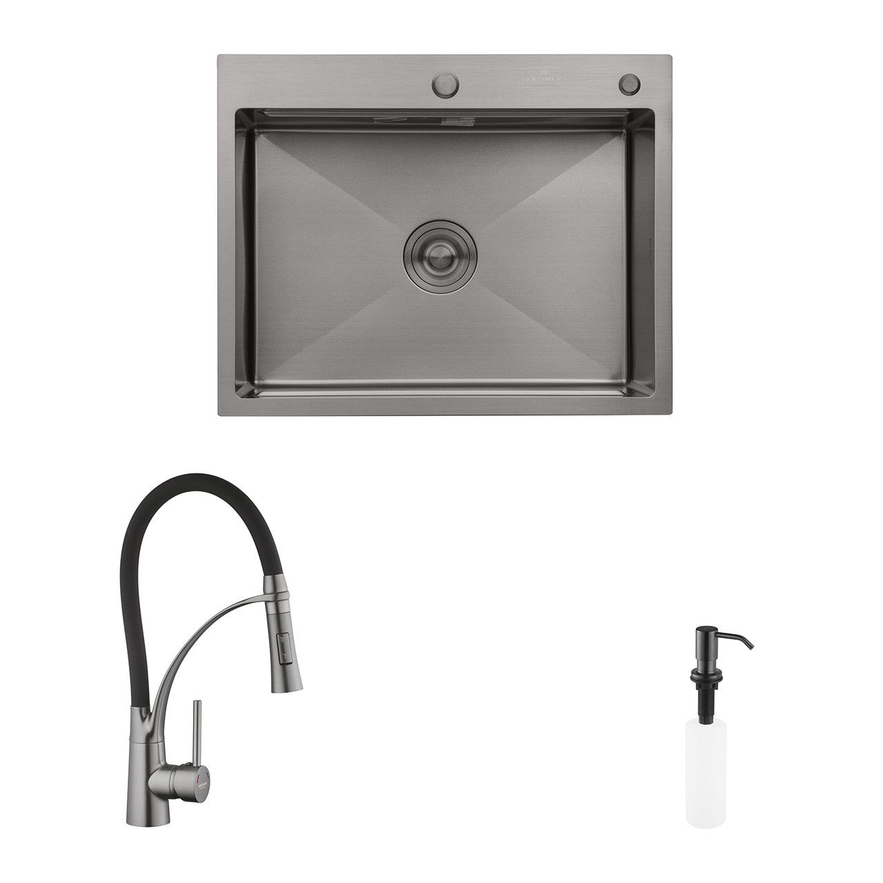 Комплект кухонна мийка Kroner Gebürstet-6050HM + змішувач Küche-C031GRA + дозатор Spender-016 В наявності