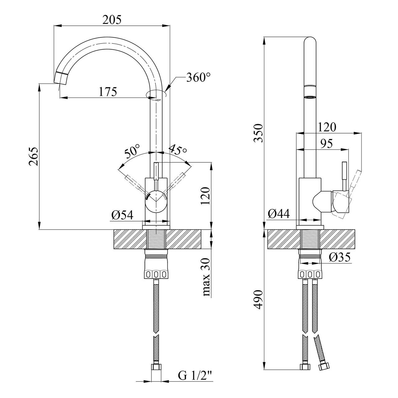 Діаметр підключення шлангів1/2ьь