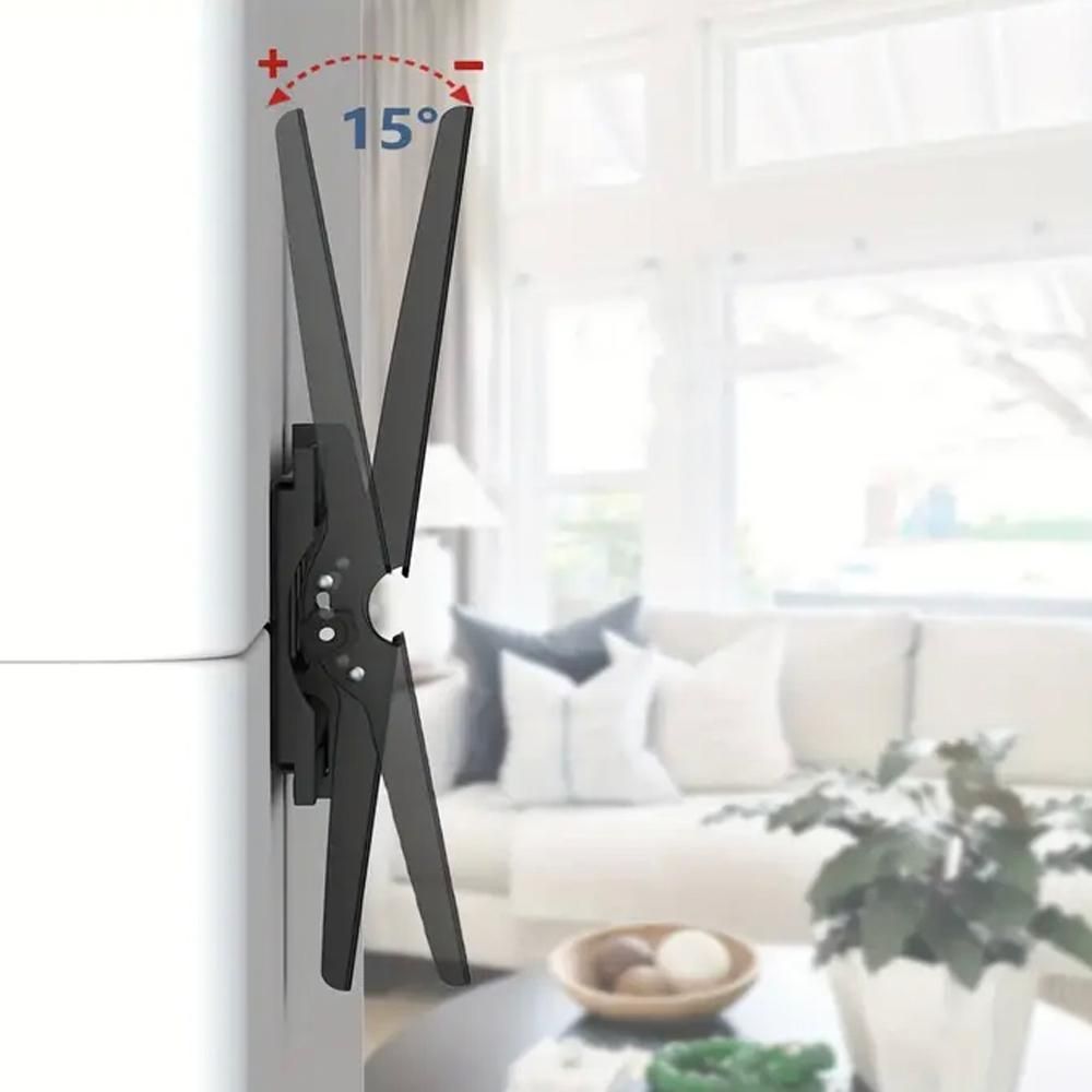 - Можливість нахилу в діапазоні ±15° дозволяє налаштувати оптимальний кут огляду в залежності від освітлення та розташування глядача. Регульована відстань від стіни (до 500 мм) забезпечує додаткову гнучкість розміщення.