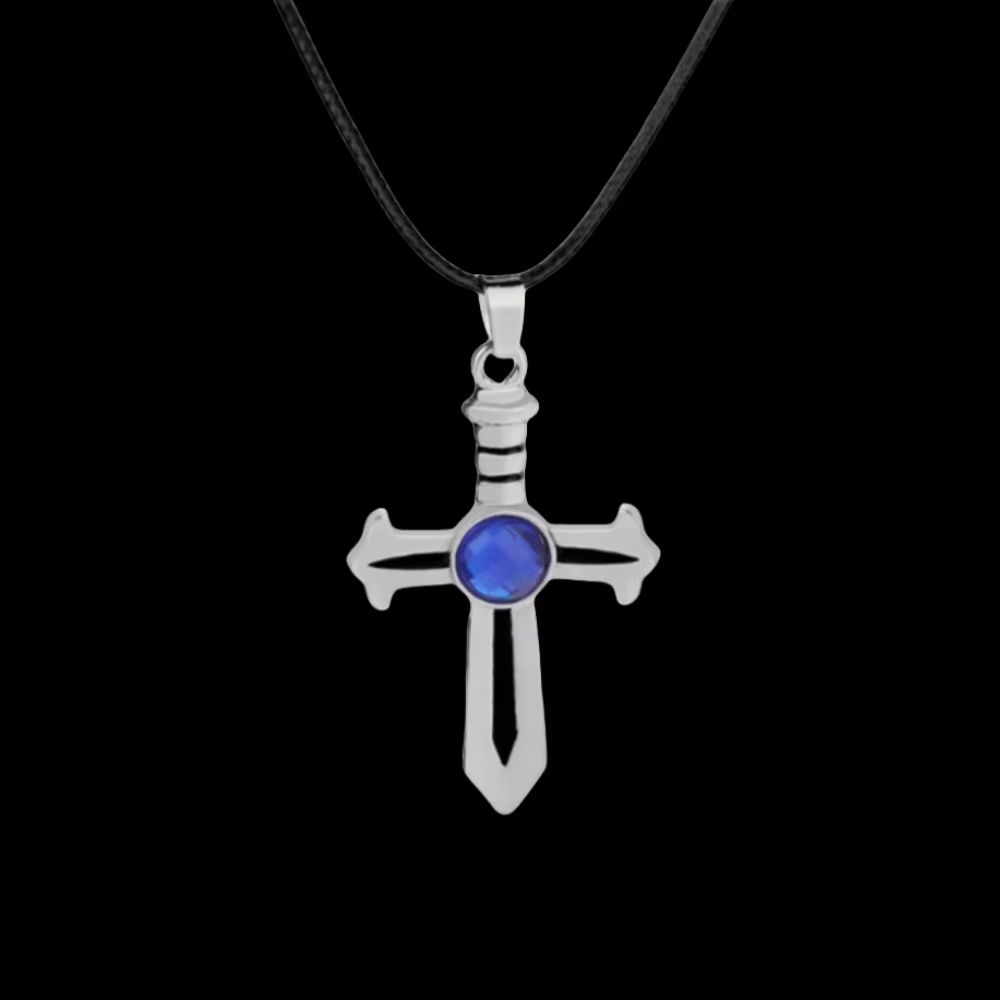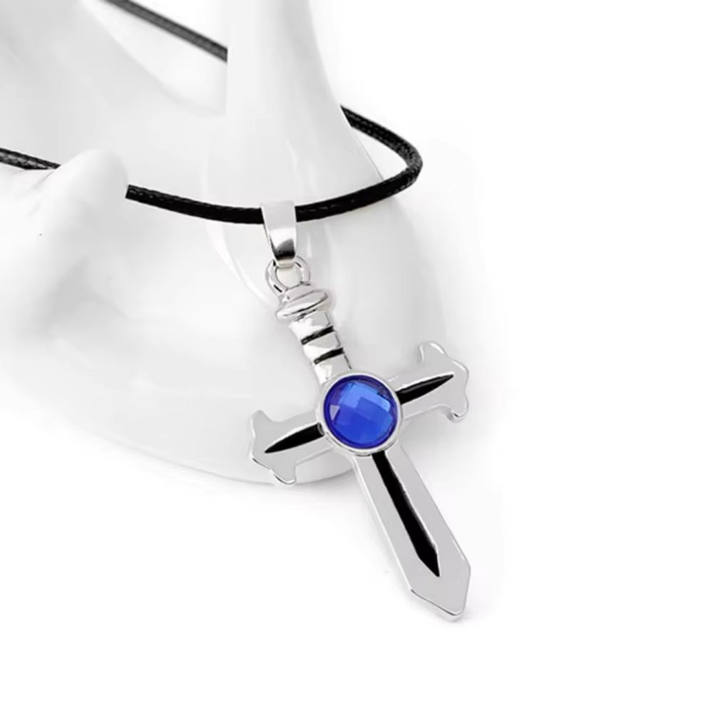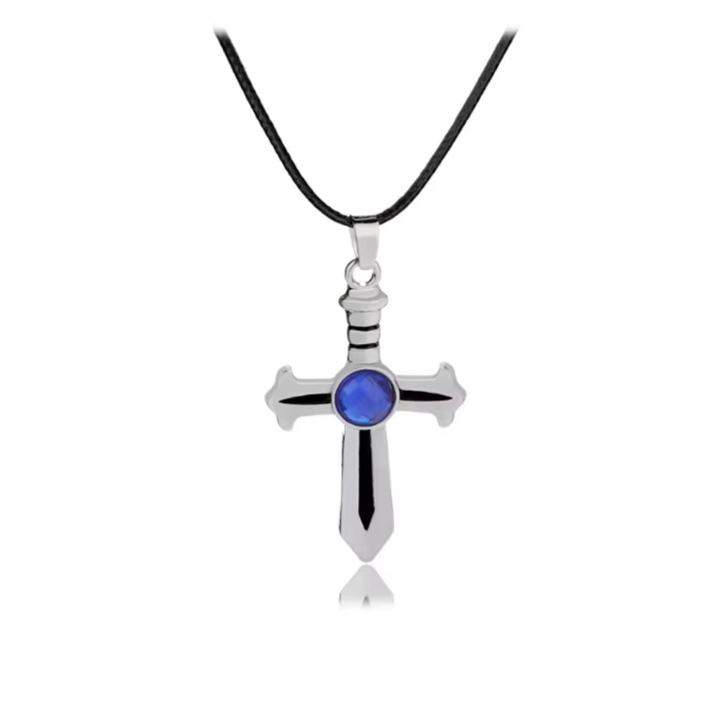 Кулон з аніме Fairy Tail у вигляді хреста меча підвіска з хвостом феї з синім каменем амулет